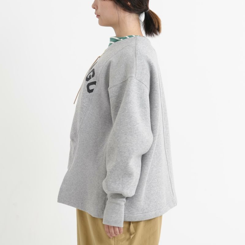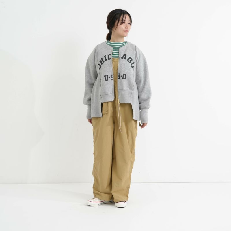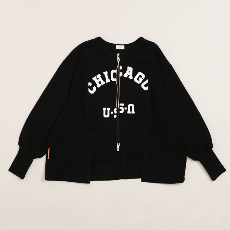 メンズ的アイテムを女性らしく、コーディネートのはずしにもなるジップスウェットに落とし込みました。 前身頃フロントはジップを付け、裾はアシンメトリーに仕上げたデザイン性の高い1枚。