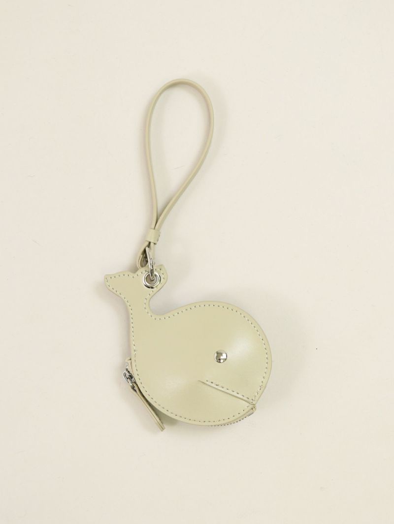 W FACEレザーのミニポーチ。 ユーモラスなクジラモチーフは、小さな目と口元のステッチがどこかとぼけたような表情をつくり、持つ人の気分をふっと和ませます。ミニマルな仕上げの中に、遊び心と愛らしさが共存するYAHKIらしいアイテムです。ジップ開閉で小物やアクセサリー、コインなどをすっきり収納可能。取り外し可能なストラップ付きでバッグチャームとしても使用可能。お好みのキーホルダーなどを重ね付けし、自分好みにカスタマイズして楽しめます。バッグの中に忍ばせても、ギフトとしても心をくすぐる存在です。