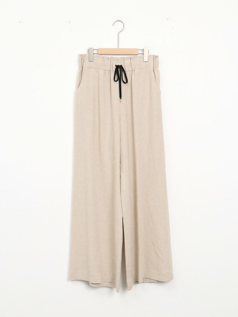 ナチュラルな風合いとリラックス感のあるtrois定番セミワイドパンツ。 程良くゆとりのあるシルエットが脚のラインを拾わず、ウエストゴムでストレスフリーな穿き心地です。
