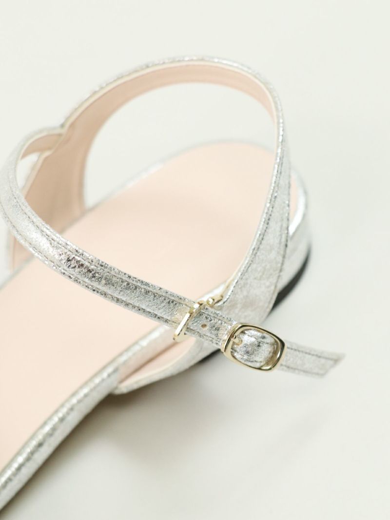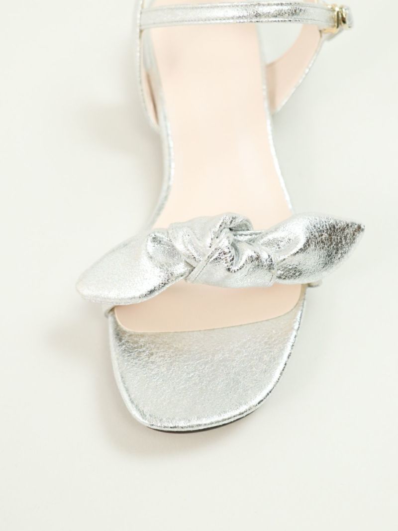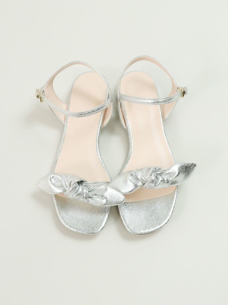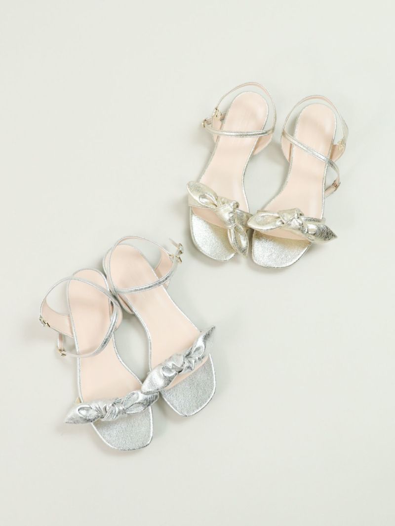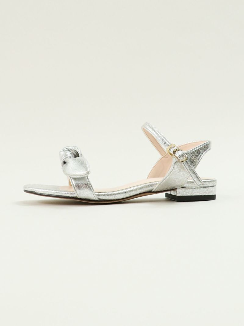 足元にさりげない可愛らしさを添える、上品なリボンサンダル。