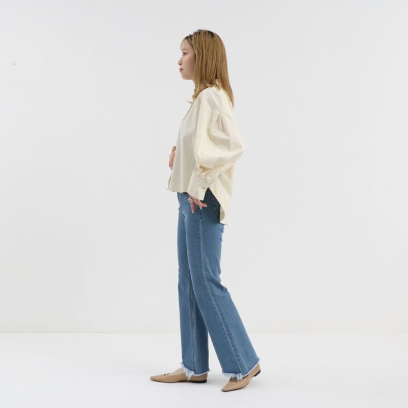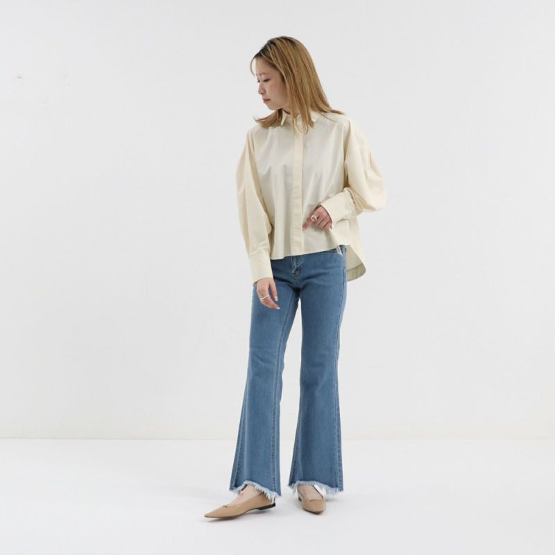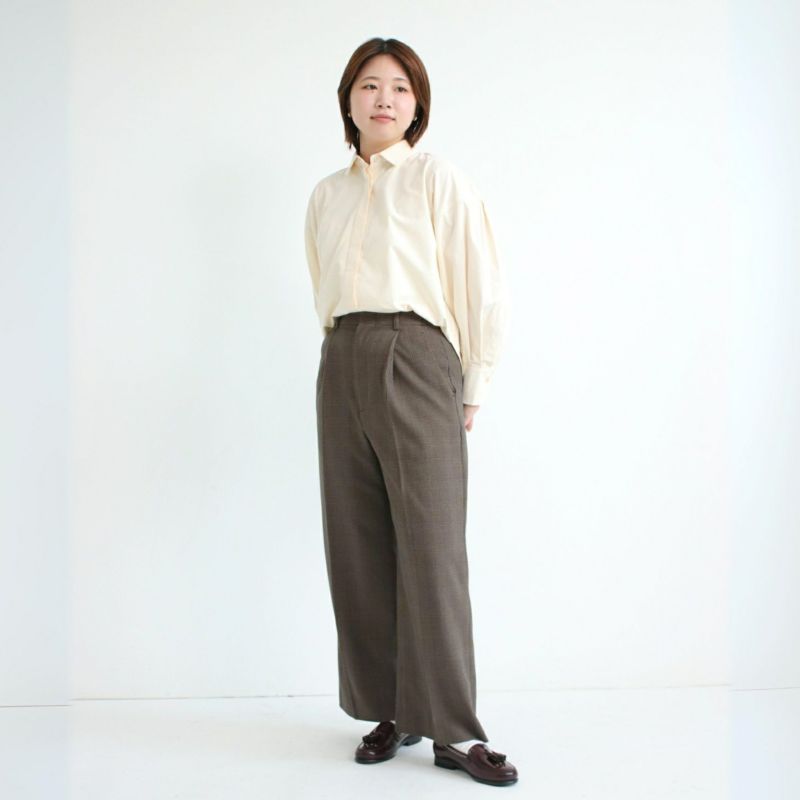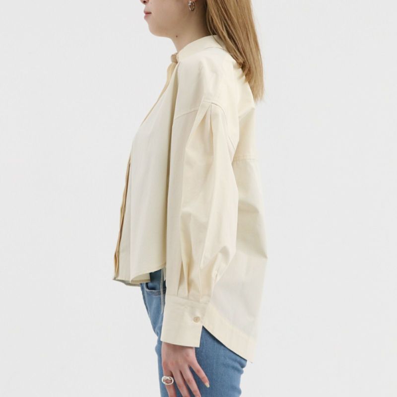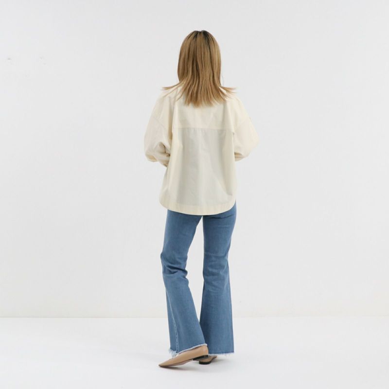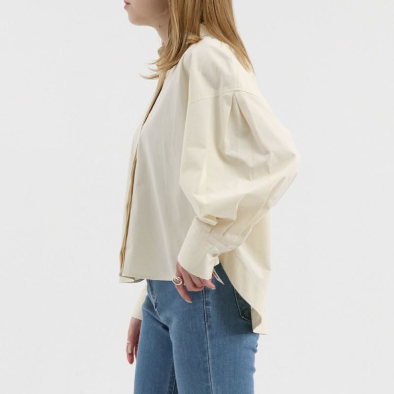 たっぷりと分量感のある袖がトレンド感のあるブラウス。 身頃は限りなくシンプルにすることで、幅広い着こなしが可能です。程よいハリ感のある素材を採用し、ボリュームスリーブを美しくみせてくれます。