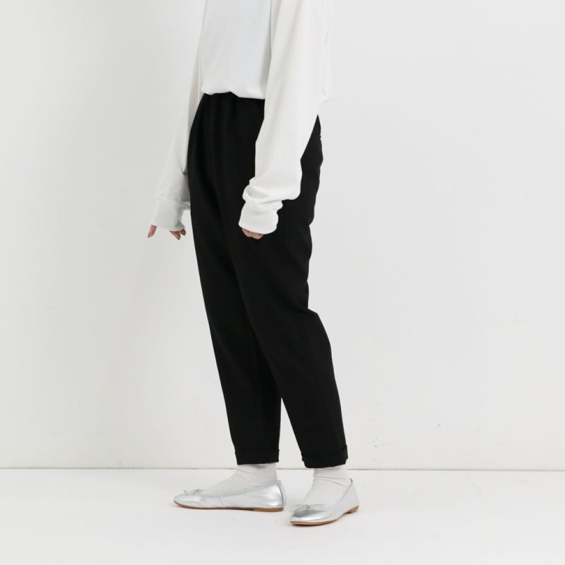 オケージョンからきれいめカジュアルにも着回しできるように、マイナーチェンジしたダブルテーパードパンツ。 程よいテーパードシルエットと丈感が特徴です。ウエストにはゴム入りで履きやすい仕様に。サイズはSとMの2サイズ展開。お仕事とプライベートの両方で履けるパンツをお探しの方にお勧めのアイテムです♪