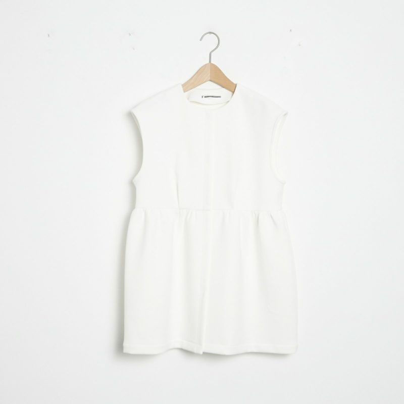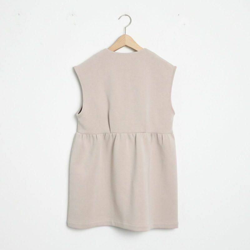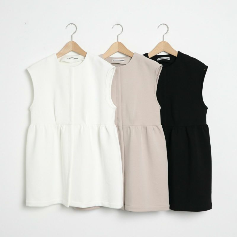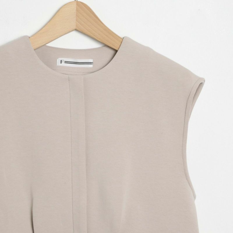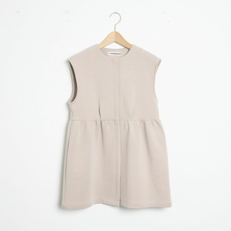 ボンディング素材で程よくハリ感があって1枚で決まるトップス。 フロントボタン開きで、ジレっぽく羽織としてもお使いいただけます。トレンドのペプラムシルエットと長めの丈感で体型カバーができるのも嬉しいポイント。