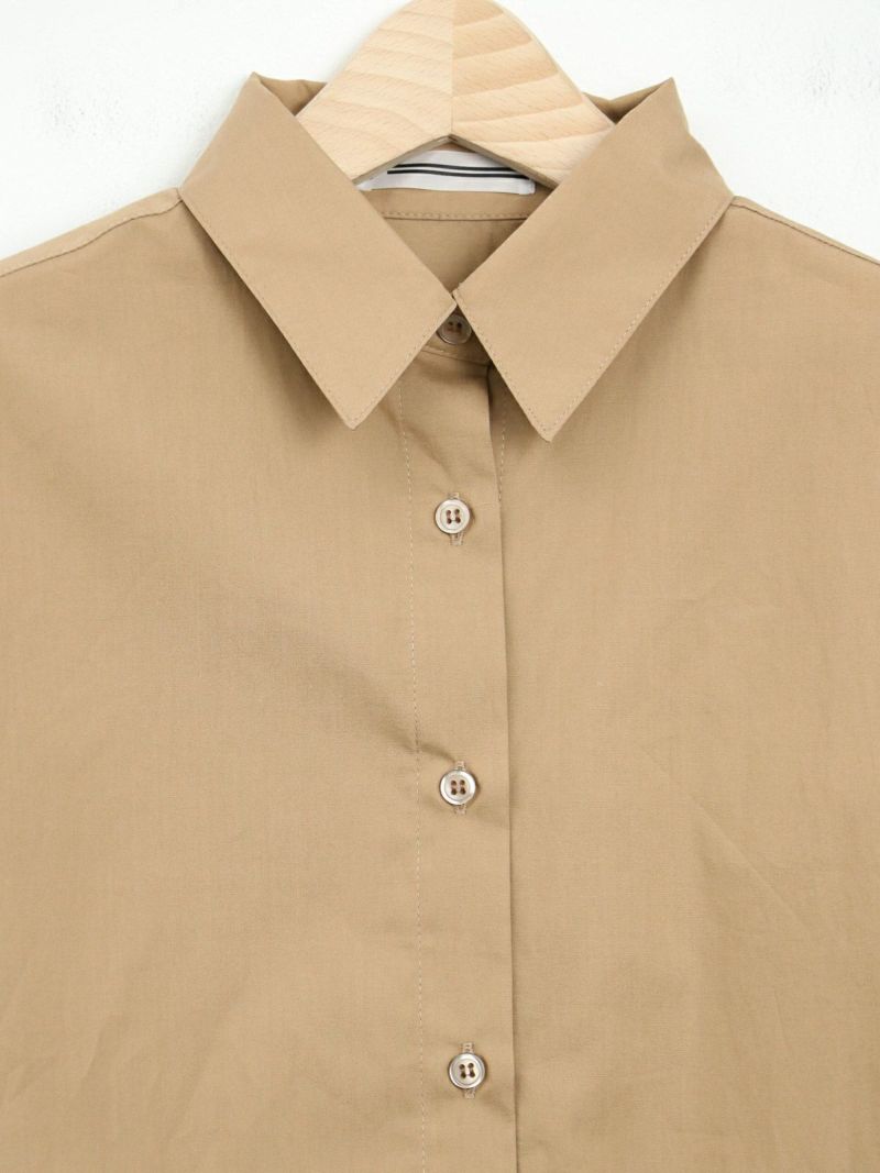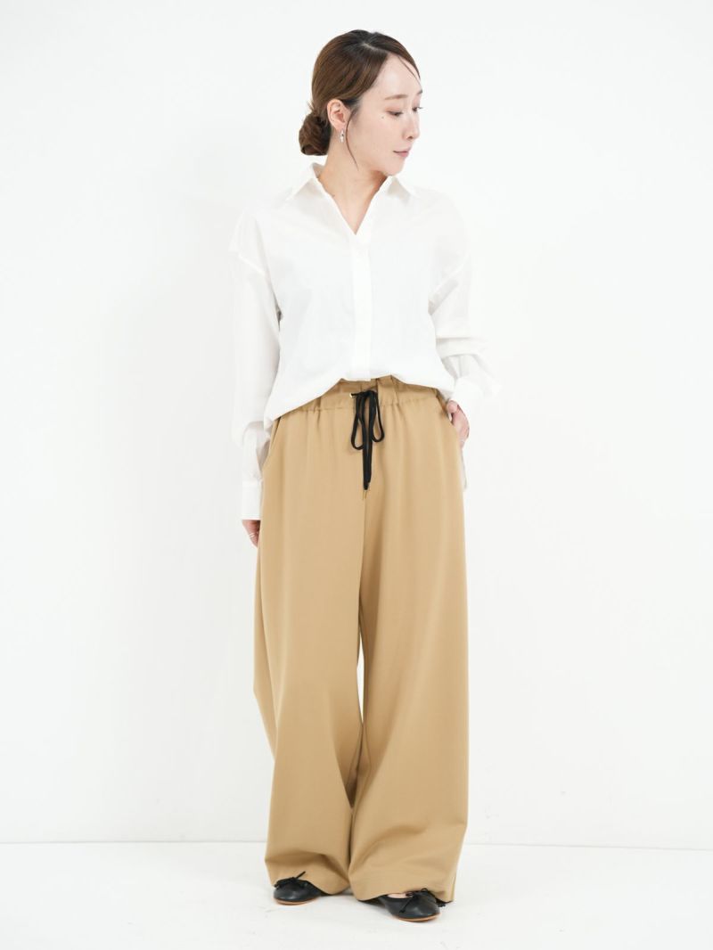 きめ細かくソフトな肌触りが特徴の上質な国内生地を使用しています。 1枚ではもちろん、ニットやスウェットとのレイヤードとしてもおすすめなサイズ感です◎