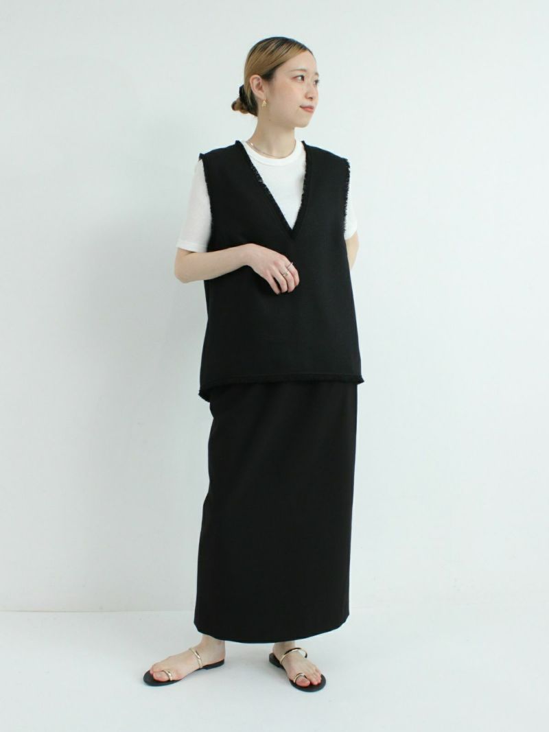 オンオフ着用できる万能ロングタイトスカート。 Iラインシルエットのすっきり見えするデザインです。伸縮性のある素材と裾のスリットが動きやすさをアップ◎シンプルで着回し抜群なスカートです。