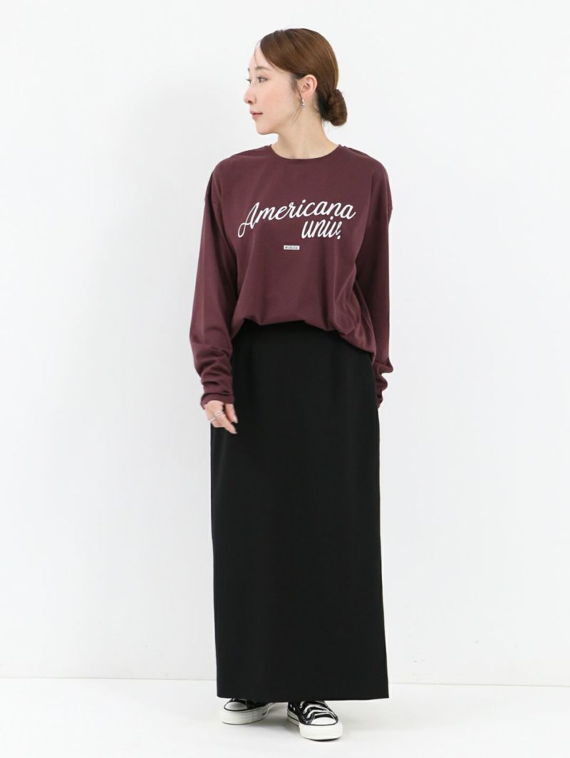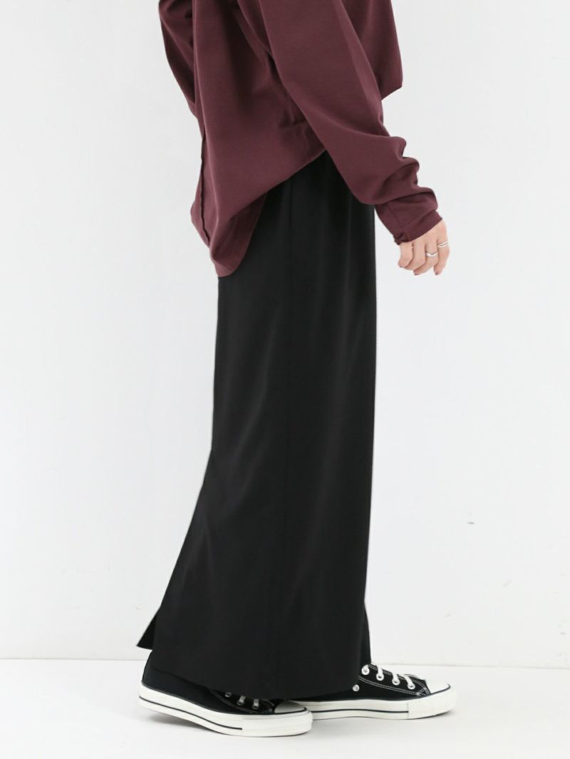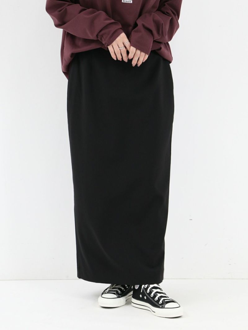 オンオフ着用できる万能ロングタイトスカート。 Iラインシルエットのすっきり見えするデザインです。伸縮性のある素材と裾のスリットが動きやすさをアップ◎シンプルで着回し抜群なスカートです。