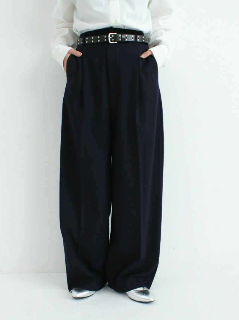 オリジナル定番のスラックスから新素材が登場! 伸縮性のある生地を使用しているため、履き心地がさらによくなりました◎ ネイビーとブラウンの2色展開で、トレンド感のあるスタイルが完成します♩