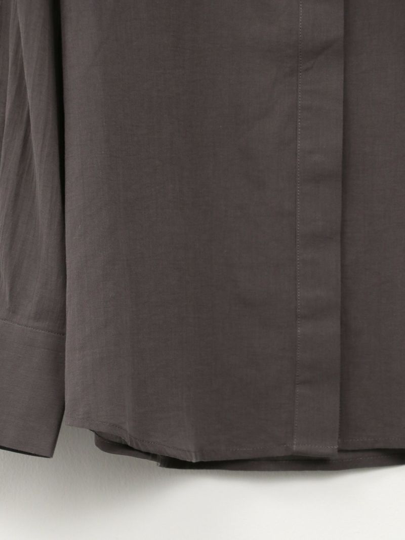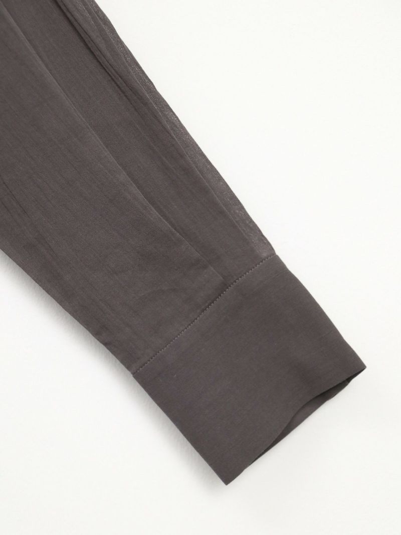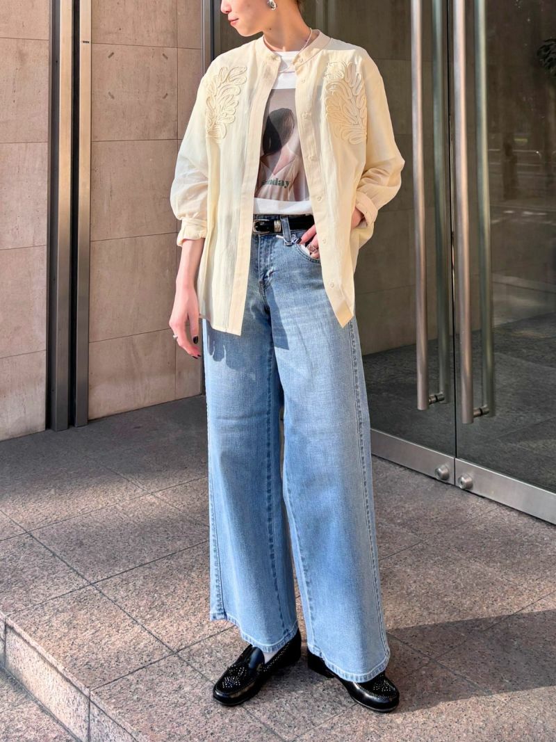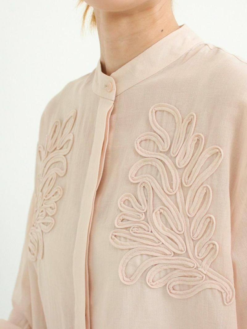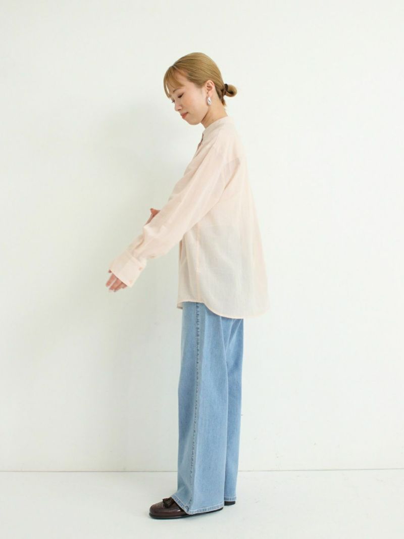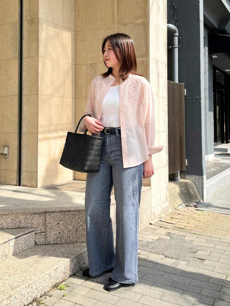 立体感のある刺繍がポイントのブラウス。 軽やかで透け感のある素材が絶妙なバランスです。 バンドカラーとヒヨクボタンで、刺繍を引き立てています。 体のラインを拾いにくく、上品なきれいめシルエット。 日焼けや冷房対策にもおすすめです◎