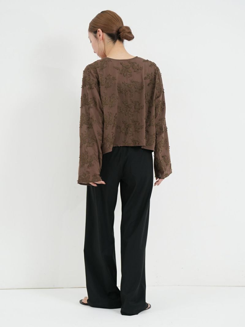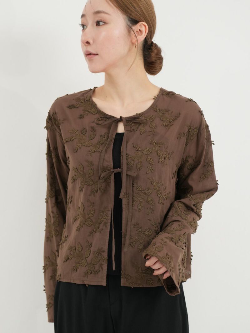 刺繍が上品な印象のレースシャツ。 コンパクトな丈感と前後2WAY仕様なデザインで、スタイリングの幅が広がります♩ デニムやチノなどのカジュアルなボトムと相性抜群です◎