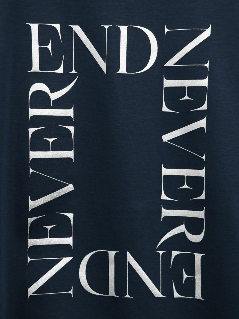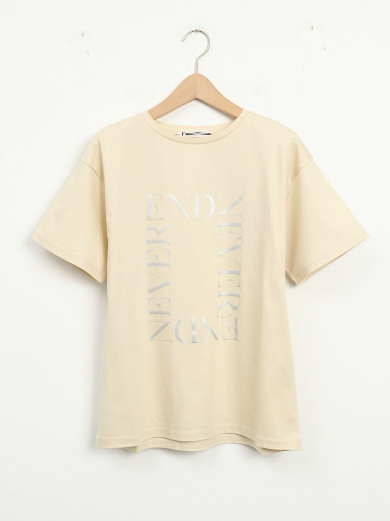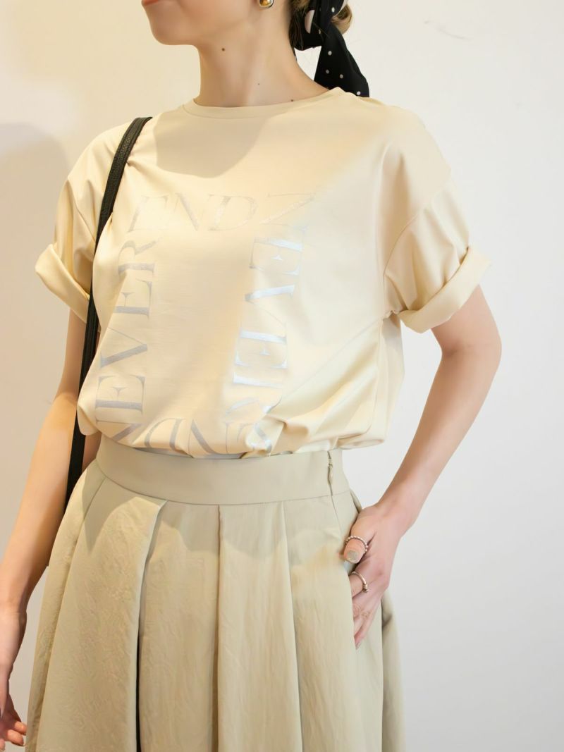 今っぽいおしゃれな箔ロゴデザインは、スラックスやデニム、スカートなどボトムスを選ばず万能アイテム◎