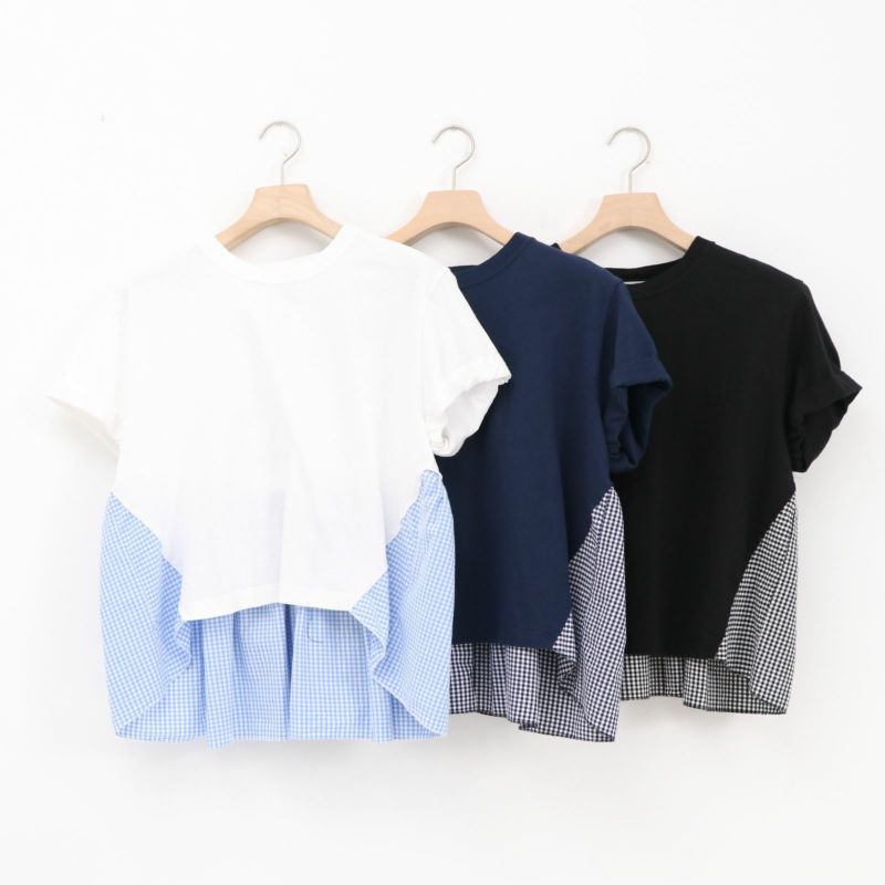 H/アッシュとのコラボ商品が新登場です。 ギンガムチェック柄が新鮮なデザイン。きれいめボトムスやハイウエストのボトムスとの相性◎