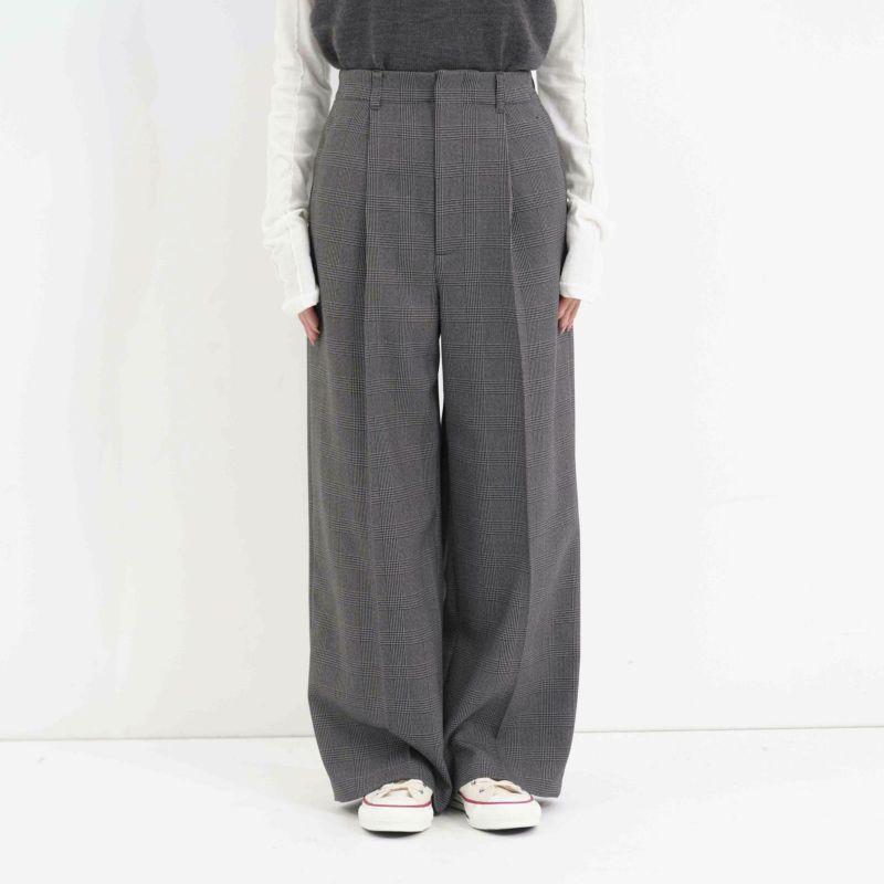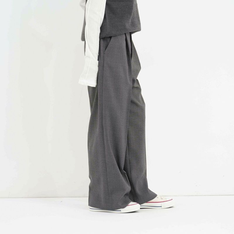 FUKAYA original のグレンチェックスラックス。 人気のオリジナルスラックスから、クラシックなグレンチェック柄が新登場! イージーケアでピリングしにくく、柔らかくストレッチ性ある生地を使用しています。 ウールのようなルックスとほどよい厚みが秋冬にぴったりで、穿き心地も抜群です◎