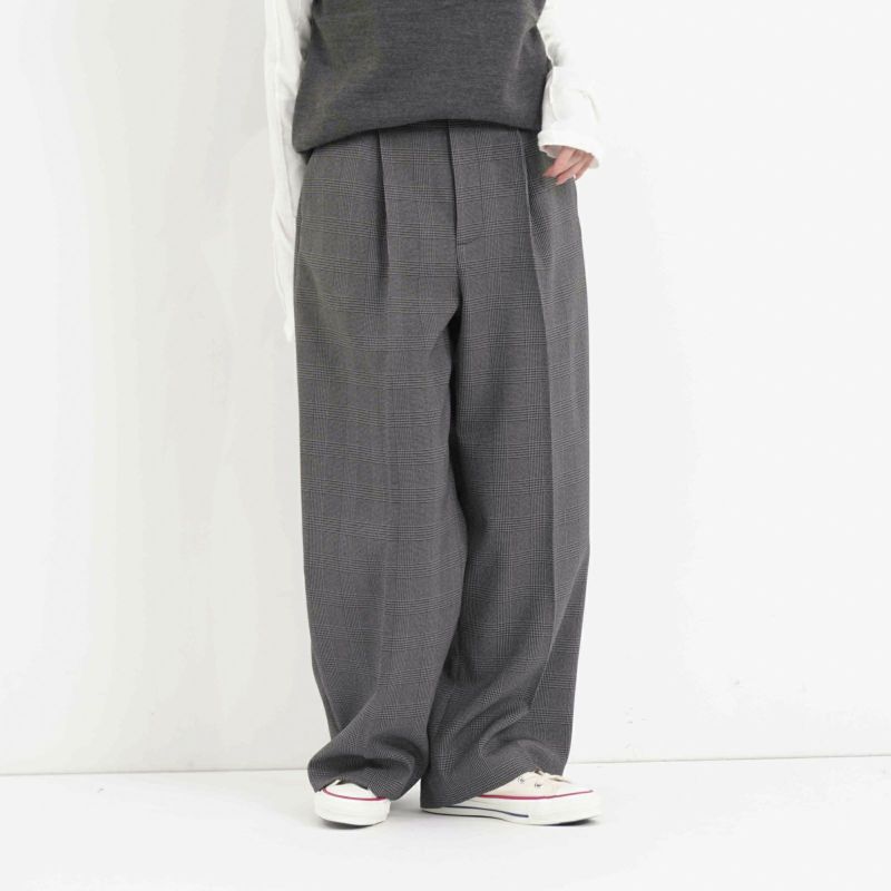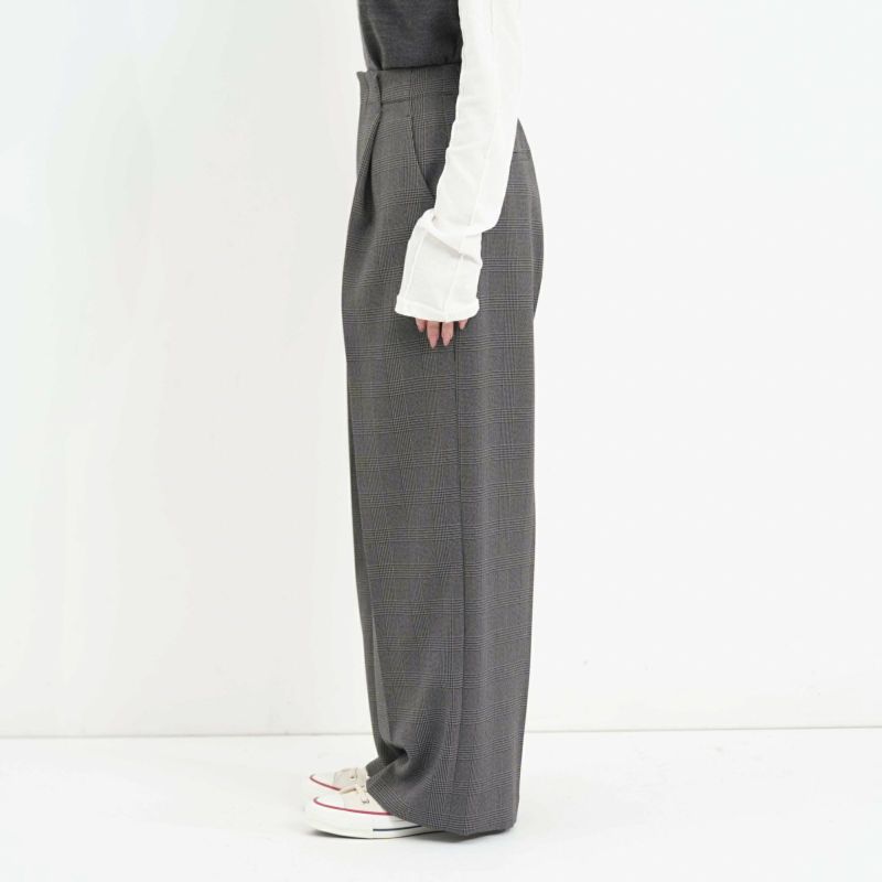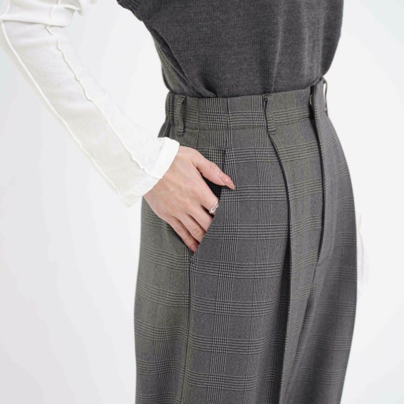 FUKAYA original のグレンチェックスラックス。 人気のオリジナルスラックスから、クラシックなグレンチェック柄が新登場! イージーケアでピリングしにくく、柔らかくストレッチ性ある生地を使用しています。 ウールのようなルックスとほどよい厚みが秋冬にぴったりで、穿き心地も抜群です◎