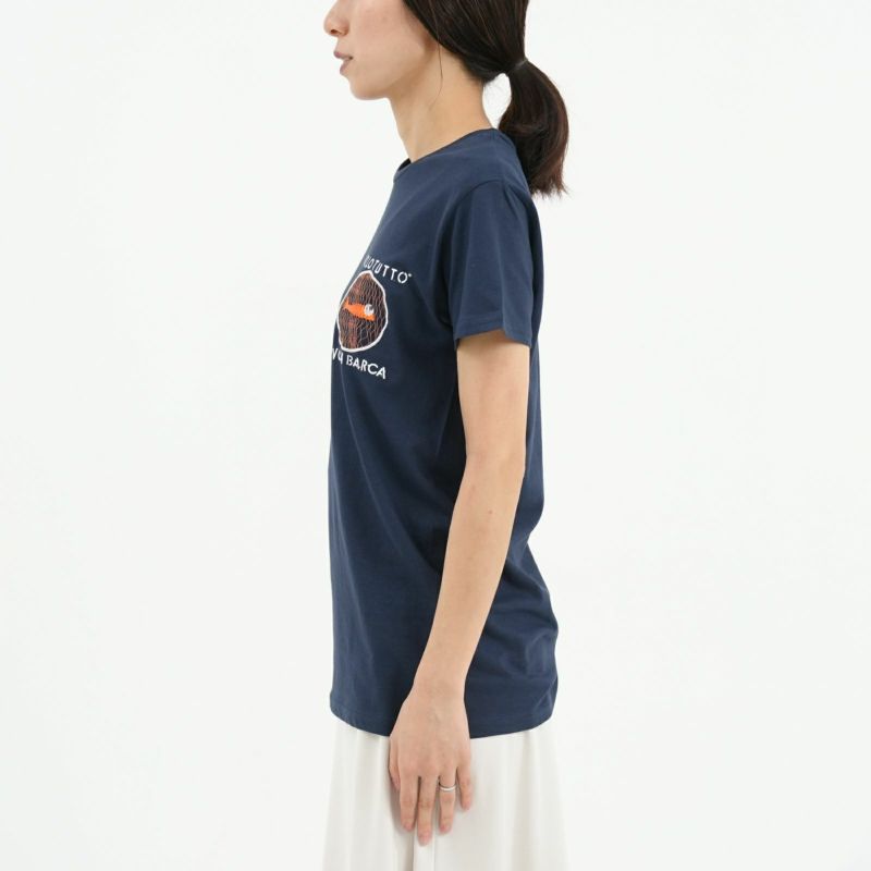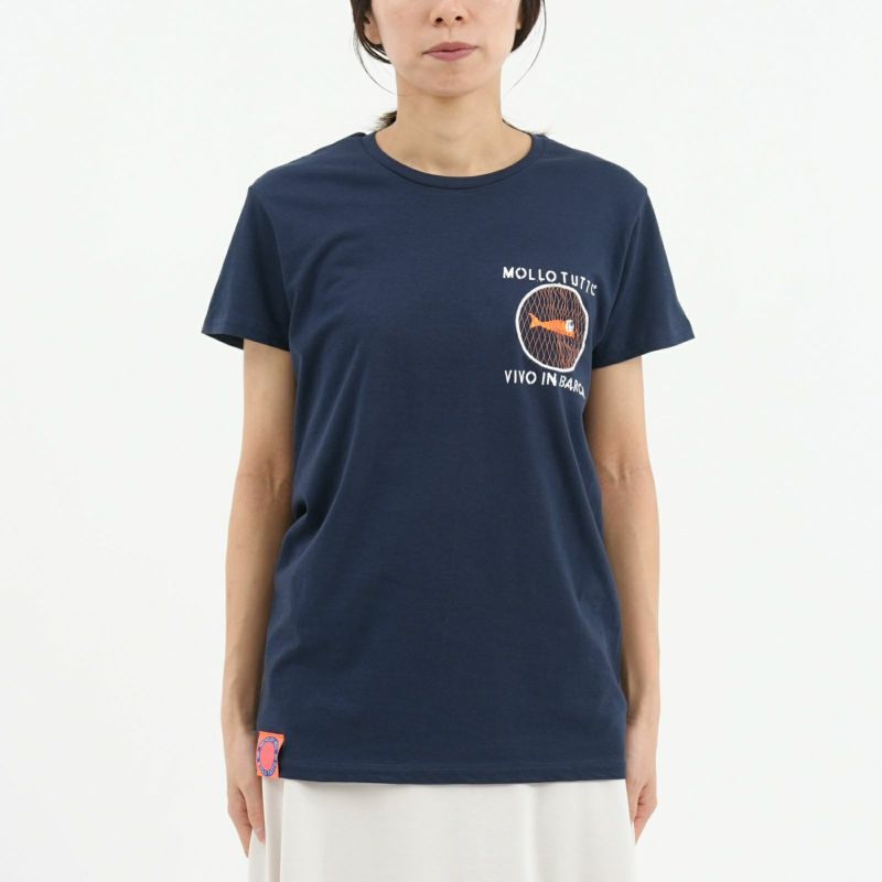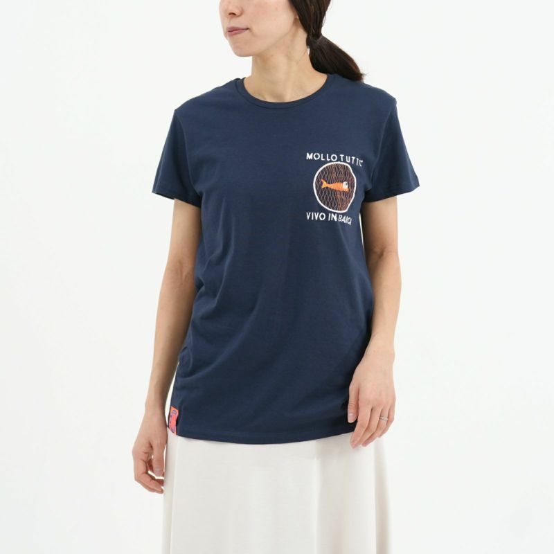 Mollo Tuttoの刺繍Tシャツ。 100%イタリア製のエコデザインブランド。 刺繍部分は、本物の網が使用されています。 バックは魚が引っ掛かったようなデザインで ユニークなTシャツをお探しの方におすすめです!