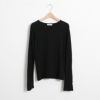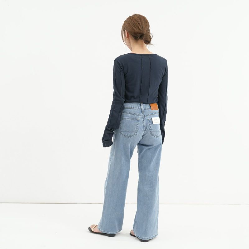 切り替えのラインが特徴的なロンT。 薄手ながらも控えめなシアー感で、1枚ではもちろんインナー使いもしやすいアイテムです。 袖は長め、襟元は横に広めですっきり着用していただけます。