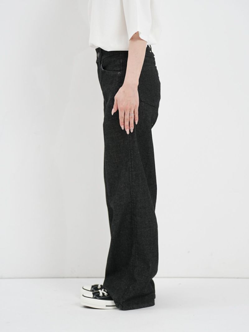 ミッドライズ、腰周りがコンパクトなすっきりワイドシルエット。 LISA WIDEと比較するとややすっきりとした脚周り。ベルト幅を太めにすることで、腰周りをコンパクトに見せ、フィット感もUP。初めてワイドパンツを穿かれる方や、ワイドでもすっきりと見せたい方にオススメしたい1本です。
