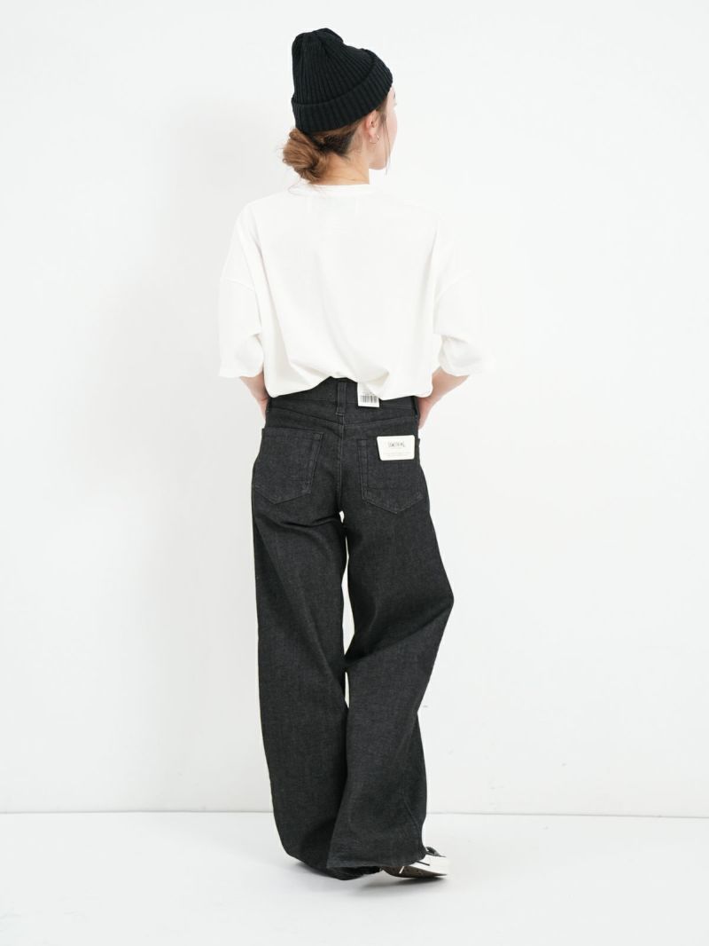 ミッドライズ、腰周りがコンパクトなすっきりワイドシルエット。 LISA WIDEと比較するとややすっきりとした脚周り。ベルト幅を太めにすることで、腰周りをコンパクトに見せ、フィット感もUP。初めてワイドパンツを穿かれる方や、ワイドでもすっきりと見せたい方にオススメしたい1本です。