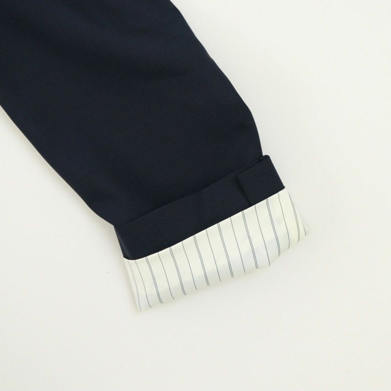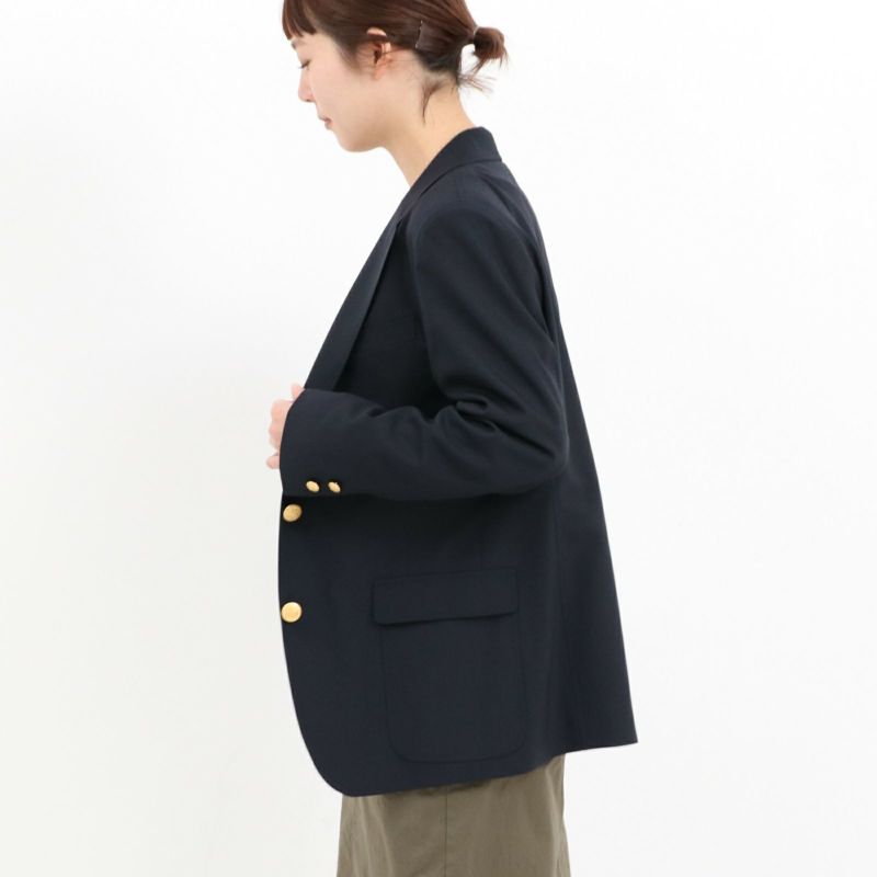 23SSで販売したBB Blazerを、総裏にAW仕様へ変更。サイズ感をお好みで選んでいただけるよう、2サイズ展開へ増やしました。コーミングが施されたウールを使用することで、美しい光沢感を持ち、さらに機能面ではストレッチ性や防しわ性を兼ね備えています。流行り廃りなく、一生お召しいただけるブレザーです。
