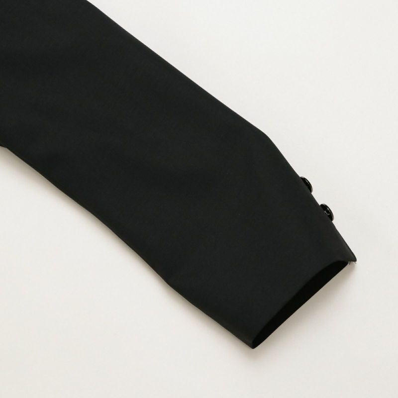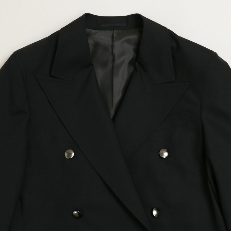 Gallery by ffs オリジナルのブレザーから、新色のブラックが登場! 大きく襟先の剣先が尖った形のピークドラペル仕様で、華やかさ、力強さ、上品さを表現しています。 ブラックカラーにシルバーボタンと、モードなデザインが特徴。 フォーマルからカジュアルまで、個性を出したい方へおすすめです。