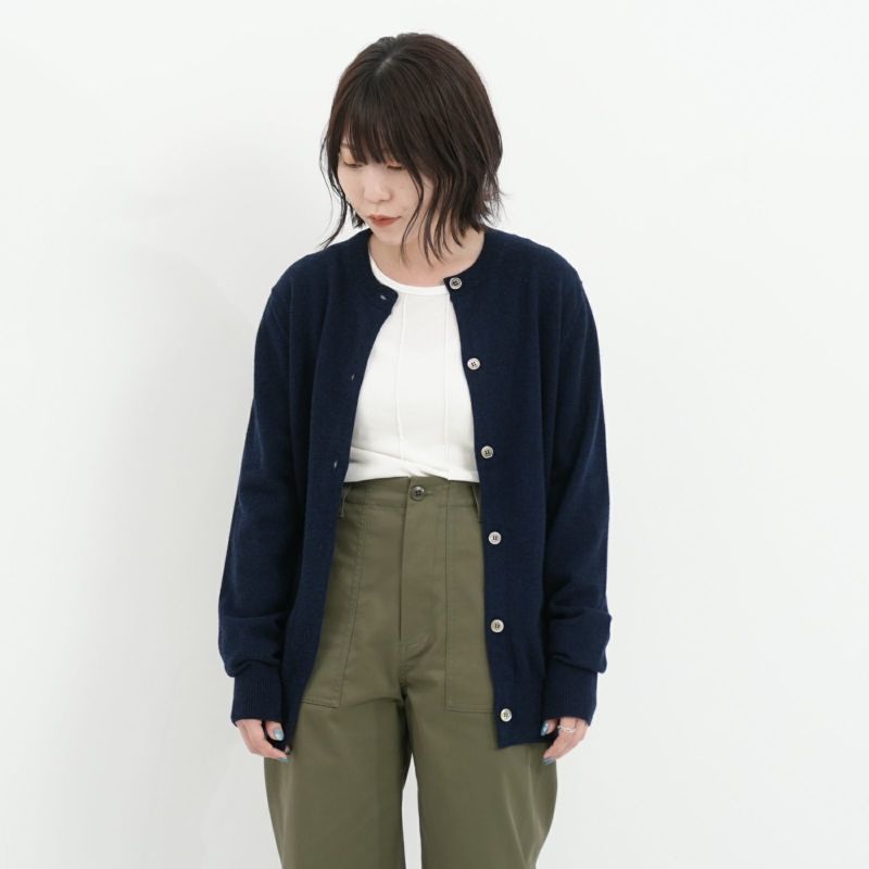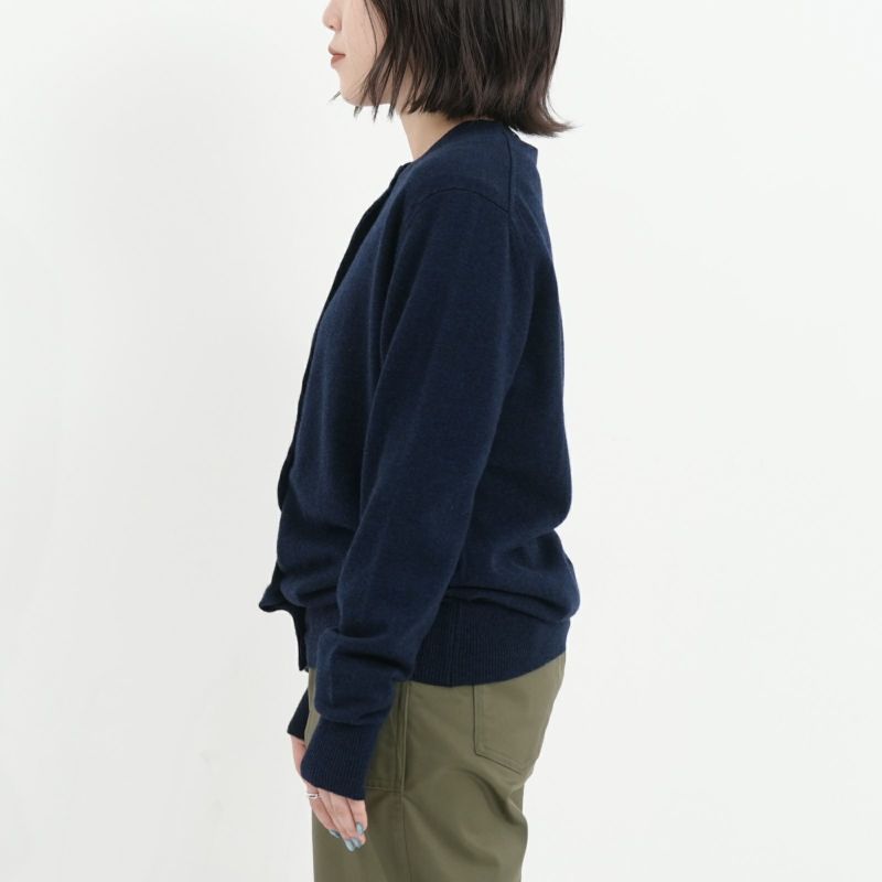 Gallery by ffs オリジナルのニットカーディガン。 軽く柔らかな風合いが特徴で、保温性・保湿性にも優れています。 ベーシックなデザインながら少し着丈が長く、体を綺麗に見せてくれるシルエットがポイント。 デイリー使いのアイテムでも上質感があり、上品なニットウェアに仕上げています。 高品質なエクストラファインラムズウールを使用し、国内のニット工場で一枚一枚丁寧に生産されています。 ボタンを3つ開けて、トップスを見せるスタイリングがおすすめ◎