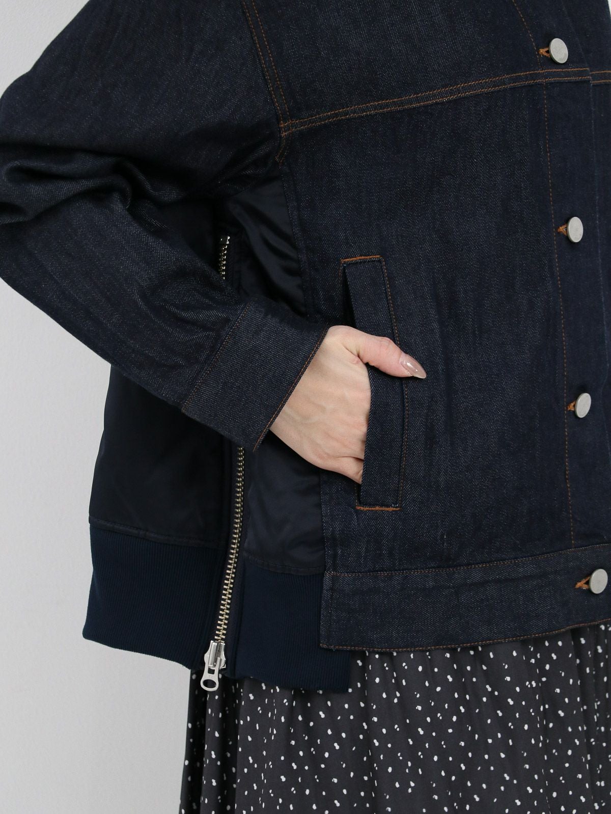 他の画像を見る [ Munich ] 8ozデニム×ナイロンツイルドッキングトラッカージャケット Quatre meiange color@Navy ¥ 28,600 税込 カートに入れる お気に入りに登録する