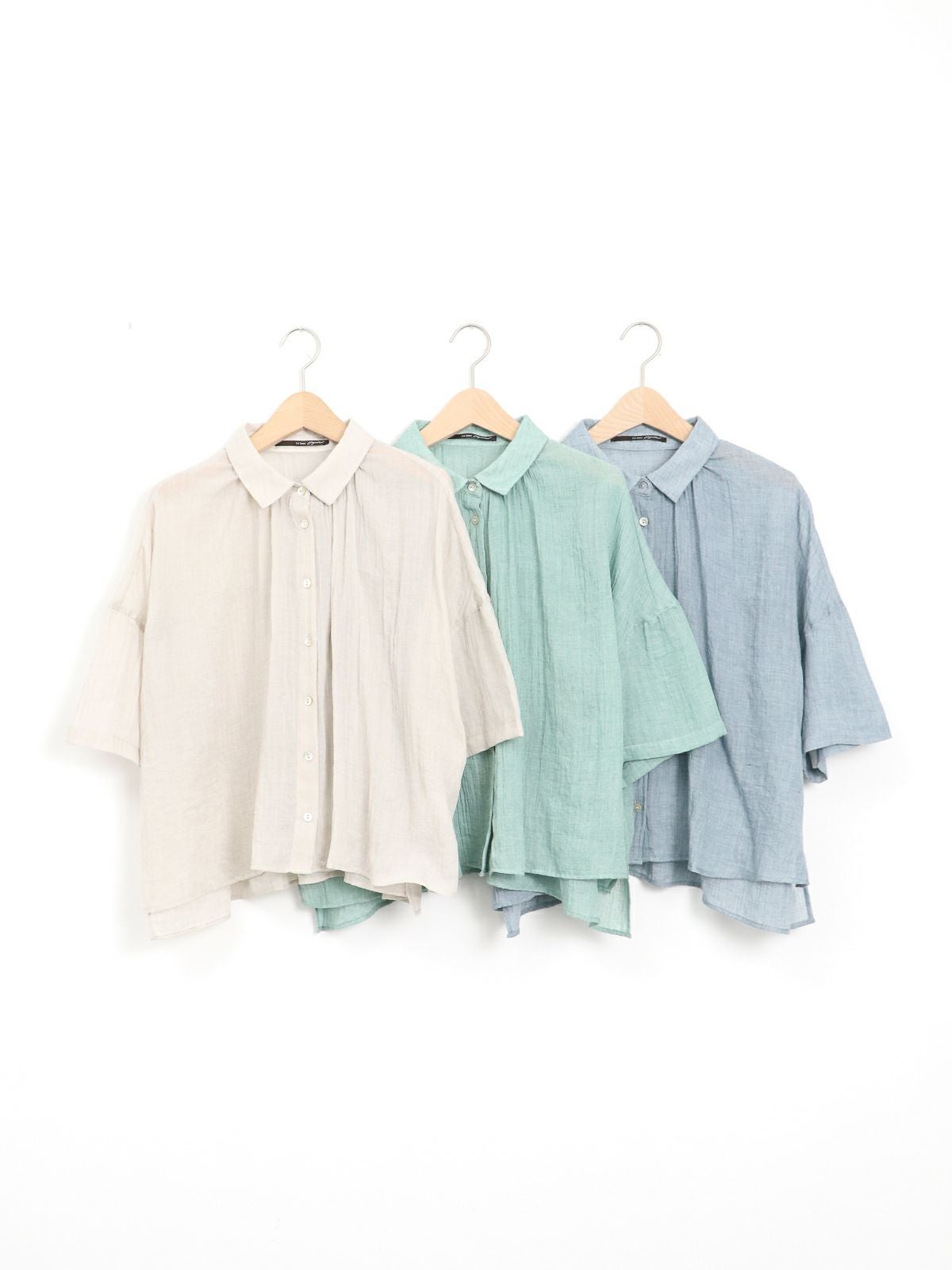 他の画像を見る [ Munich ] ハーフスリーブシャツ Quatre meiange color@Brown color@Blue color@Pink ¥ 19,800 税込 カートに入れる お気に入りに登録する