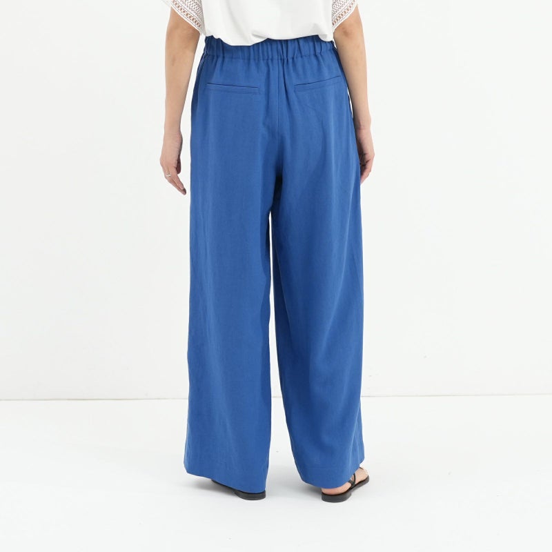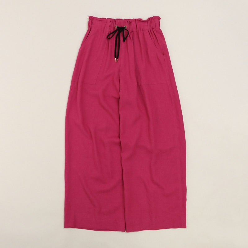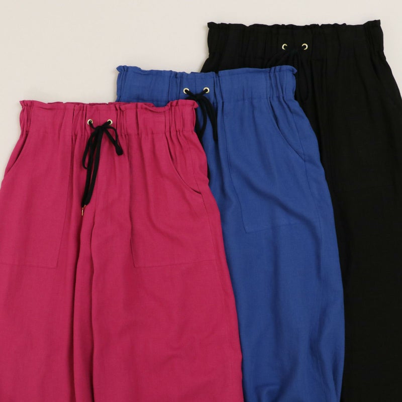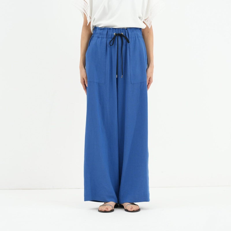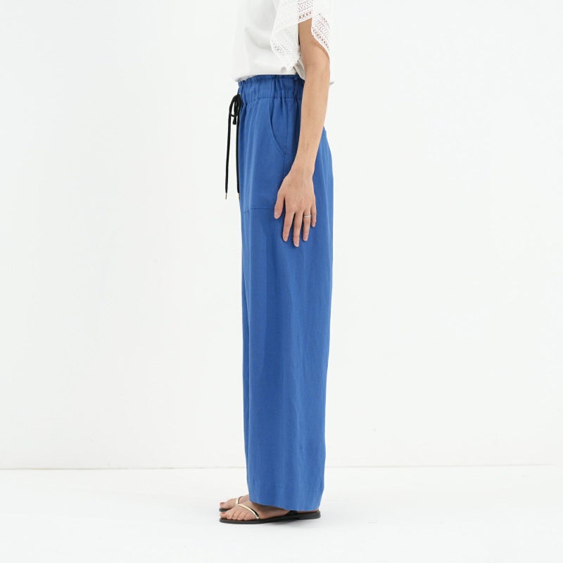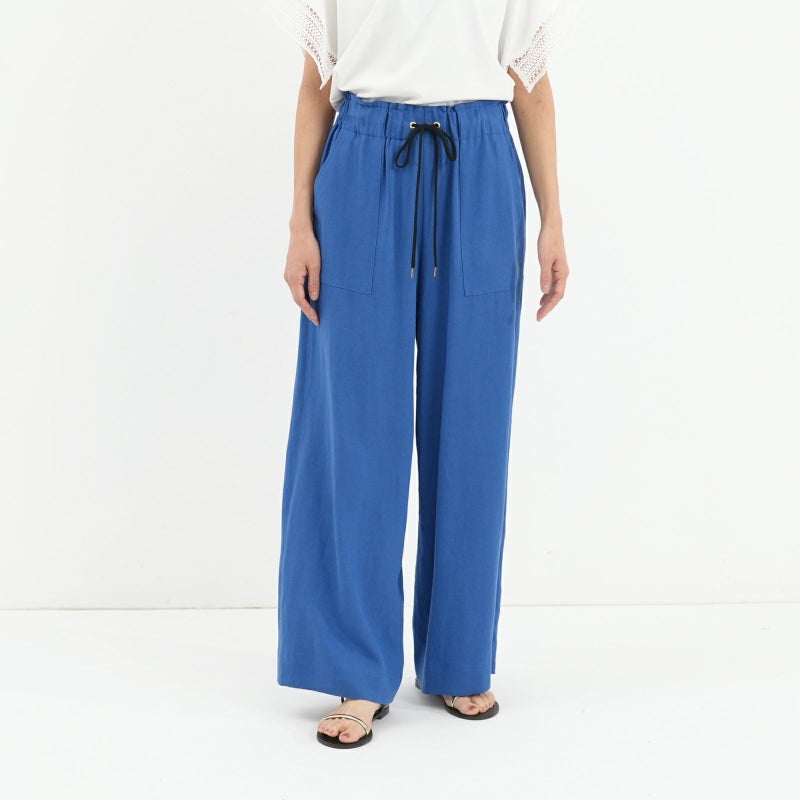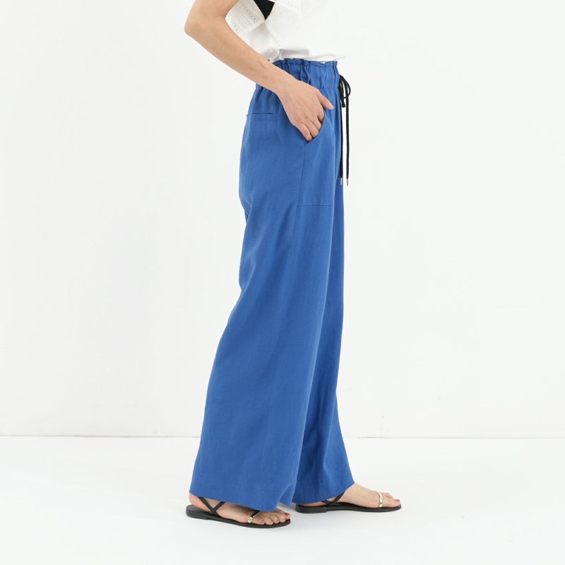 清涼感のあるリネン混のバイオワッシャー生地を使用したセミワイドパンツ。 リネン×レーヨンのさらりとした履き心地で、trois定番アイテムです。 生地自体ストンとした落ち感があり、大人っぽくこなれ感を演出してくれます。