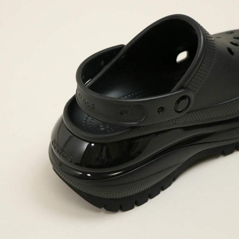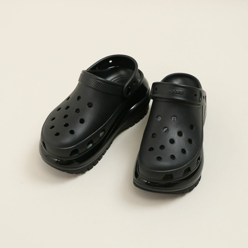 クロックスの新しいコレクション、メガ クラッシュ クロッグ。 クラシック クロッグを印象的なデザインで大胆にアップデート。 厚みある艶感あるソールが特徴です。 あらゆるコーディネートをさらにスタイリッシュにしてくれます。 ソールが厚いため、スタイルアップ効果も嬉しいポイント。