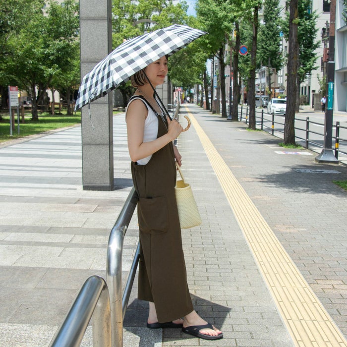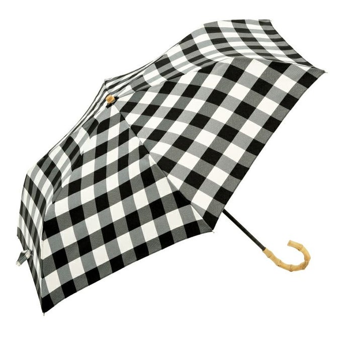 大胆なチェック柄が夏の日差しに映える晴雨兼用傘。 コーディネートの主役にして、お洒落を楽しめます。バンブー手元がアクセントに。UVカット加工で紫外線をしっかりカット。紫外線遮蔽率99%以上。(※紫外線遮蔽率は生地の色味によって多少異なります。)急な雨にも対応でき、機能性とデザイン性を両立。開閉時に指や爪を傷めないようにロクロ部分に安全カバーが付いています。