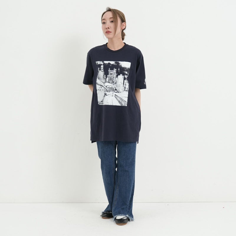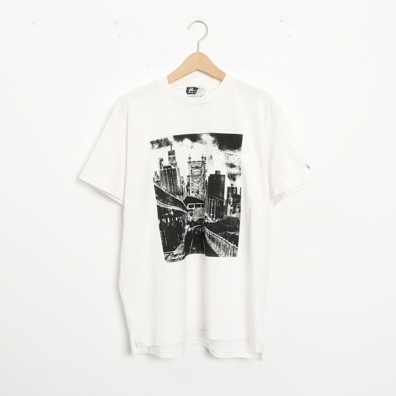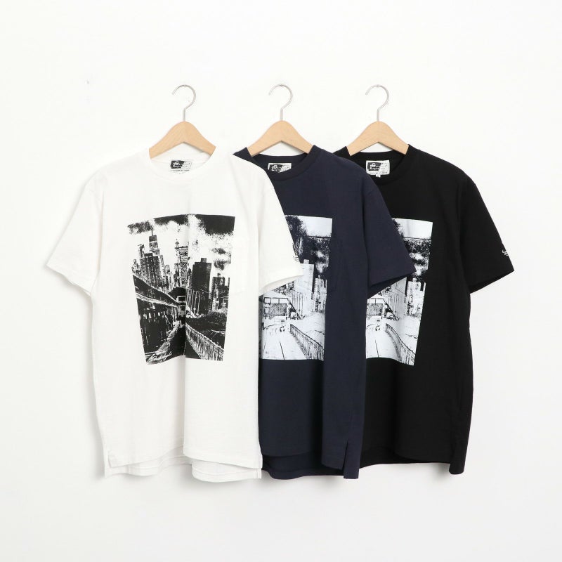 ENGINEERED GARMENTSに別注したフォトプリントTシャツ。 ブランドタグにも使われているニューヨークの街並みをプリントしています。 プリントの右下には、デザイナー・鈴木大器氏のサイン入り! 左袖のヒューマンアイコンも復刻デザインでスペシャルな一枚となっています。