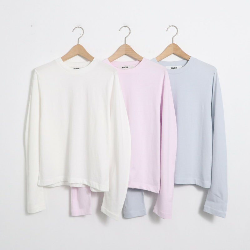 韓国セレクト、RIVERのロングTシャツ。 シンプルながらも袖の上部がカーブになっているデザインで、程よくアクセントを加えれてくれるロングTシャツ。 さらっとした生地を使用しているため、着心地も抜群です◎