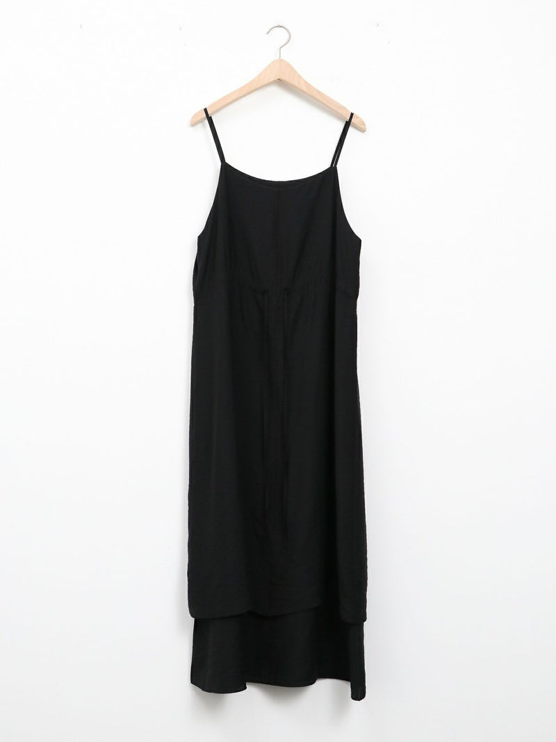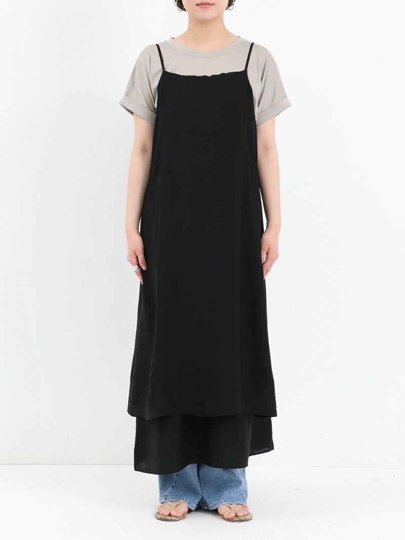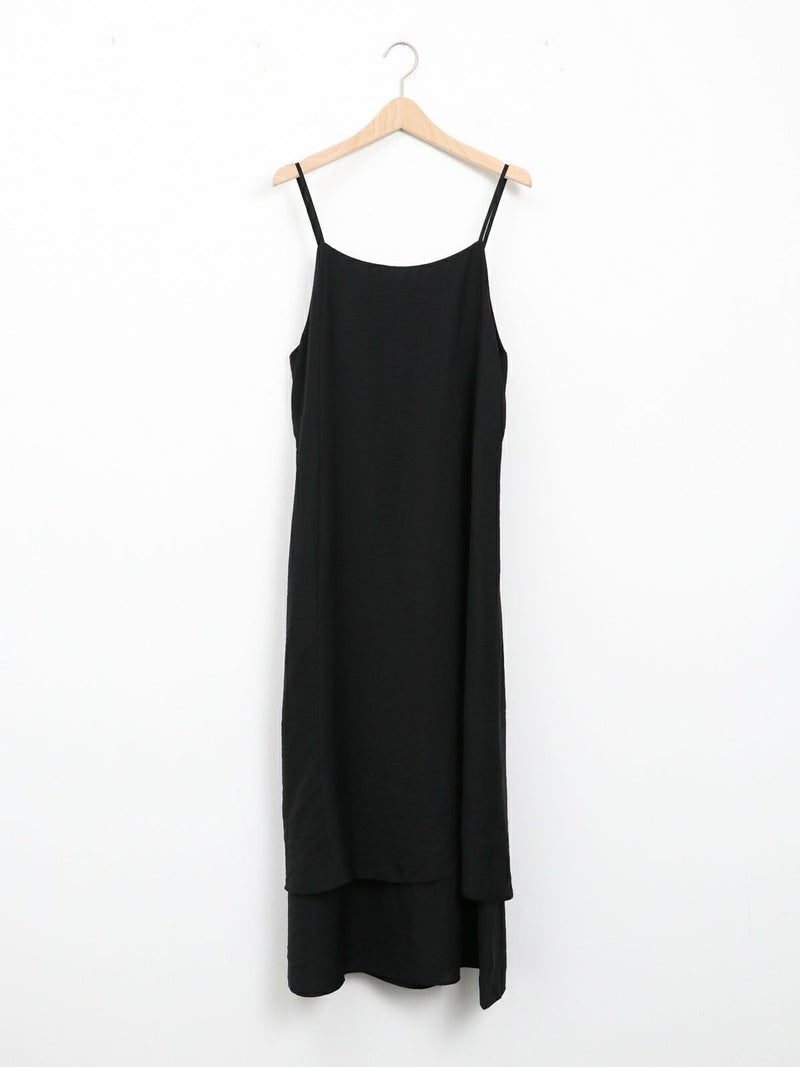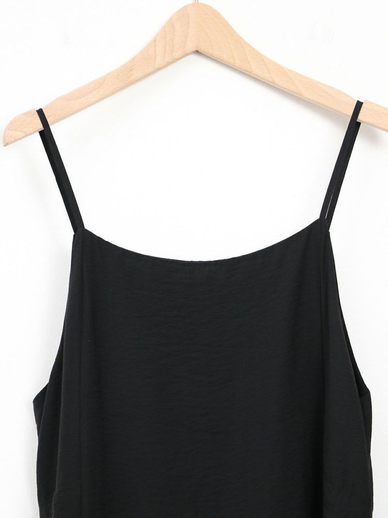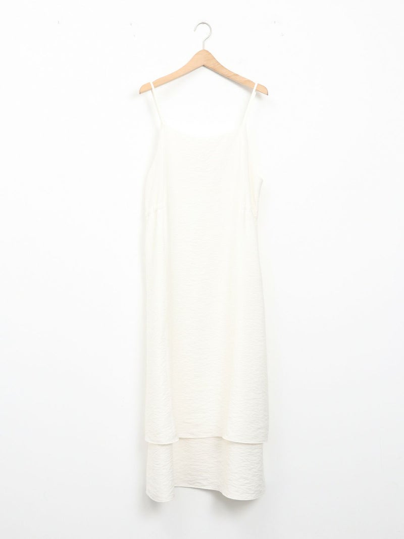 後ろリボンのシンプルなキャミワンピース。 わき腹から後ろまで入った紐を絞ることでウエストマークされ、スタイルアップして見えるワンピース。 シワ感のある生地で、カジュアルなコーデにも使いやすいアイテムです。 裾がティアードデザインになっているのもポイント。 パンツと合わせたレイヤードスタイルもオススメです。
