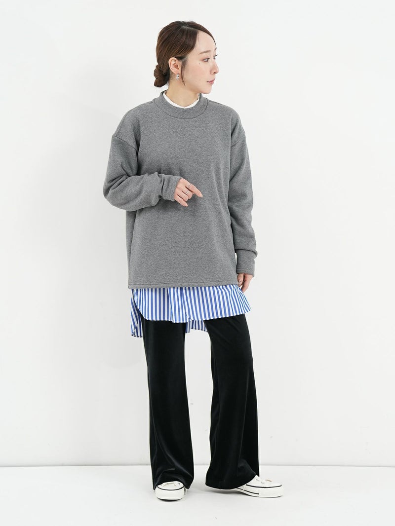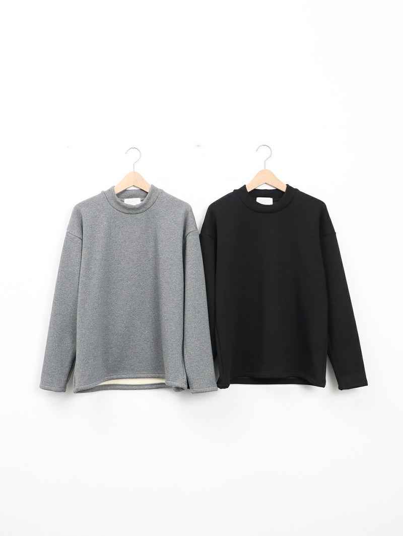 sogliaのMOCK NECK PULLOVER。 裏面を特殊な方法で編むことでベロアのような裏起毛を施した、保温性に優れた生地「BOMBER HEAT」仕様。滑らかな肌当たりと心地よい暖かさ、さらにストレッチ性を兼ね備えており、着心地バツグンです。毎日着たくなる、リラクシングなアイテムです。