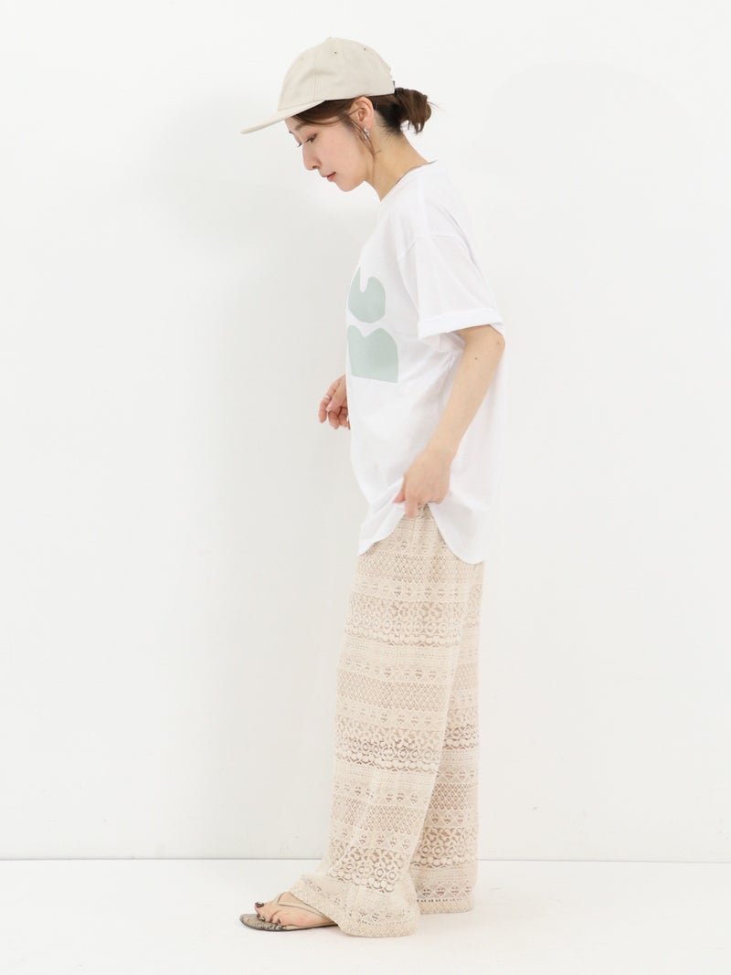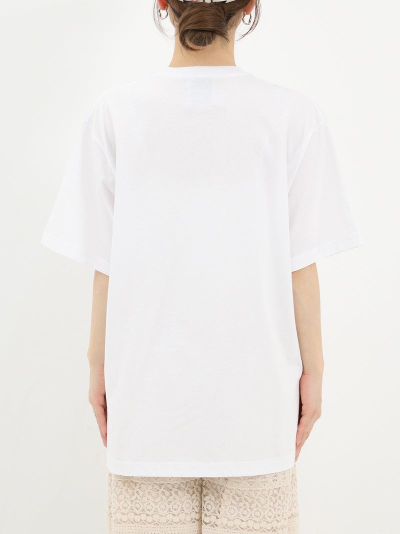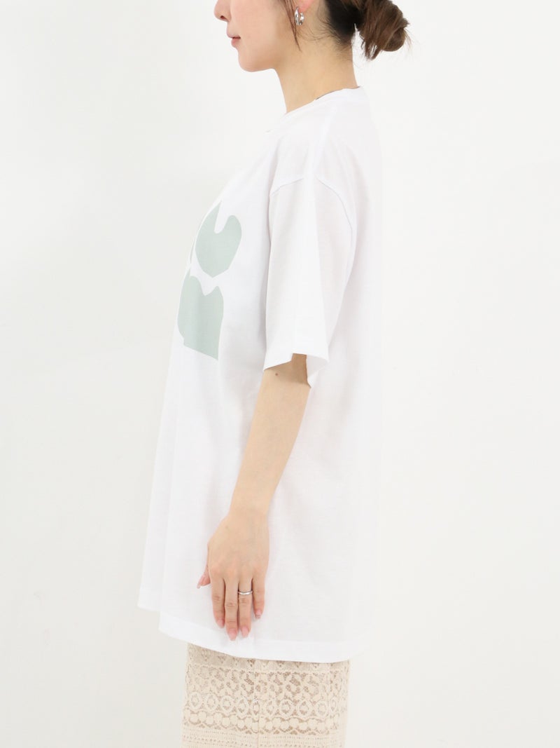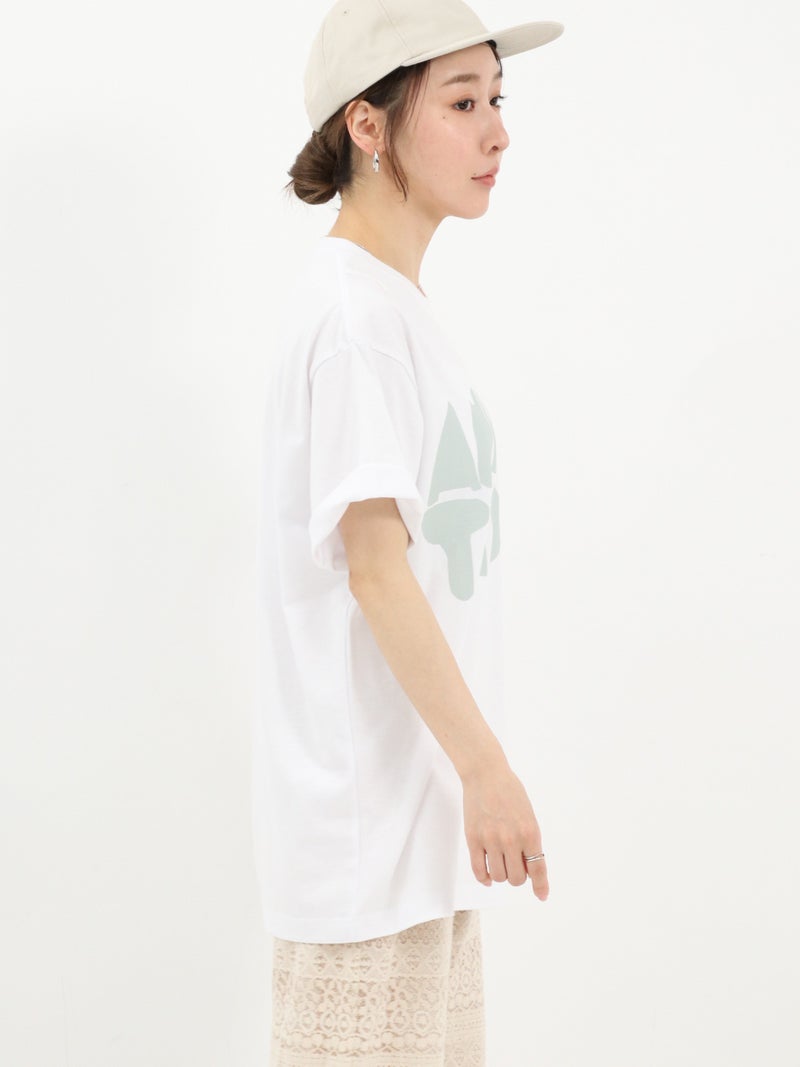 遊び心のあるアートなロゴが印象的なTシャツ。 主張しすぎない絶妙なカラーリングのロゴは、大人のカジュアルスタイルに程よい抜け感を演出します。 ゆとりのあるシルエットが体のラインを自然にカバーしつつ、クリーンな生地感できれい見えも叶えてくれます。 一枚で着るのはもちろん、ジャケットやカーディガンのインナーとしてロゴを覗かせる着こなしもおすすめです。