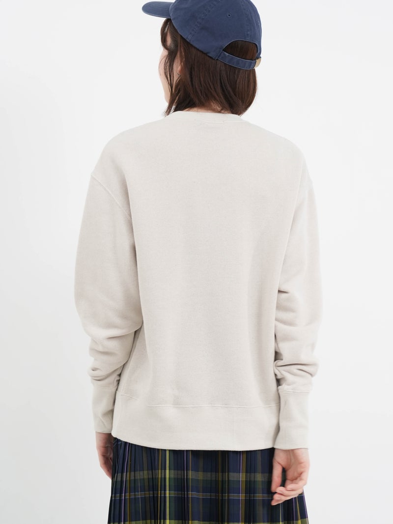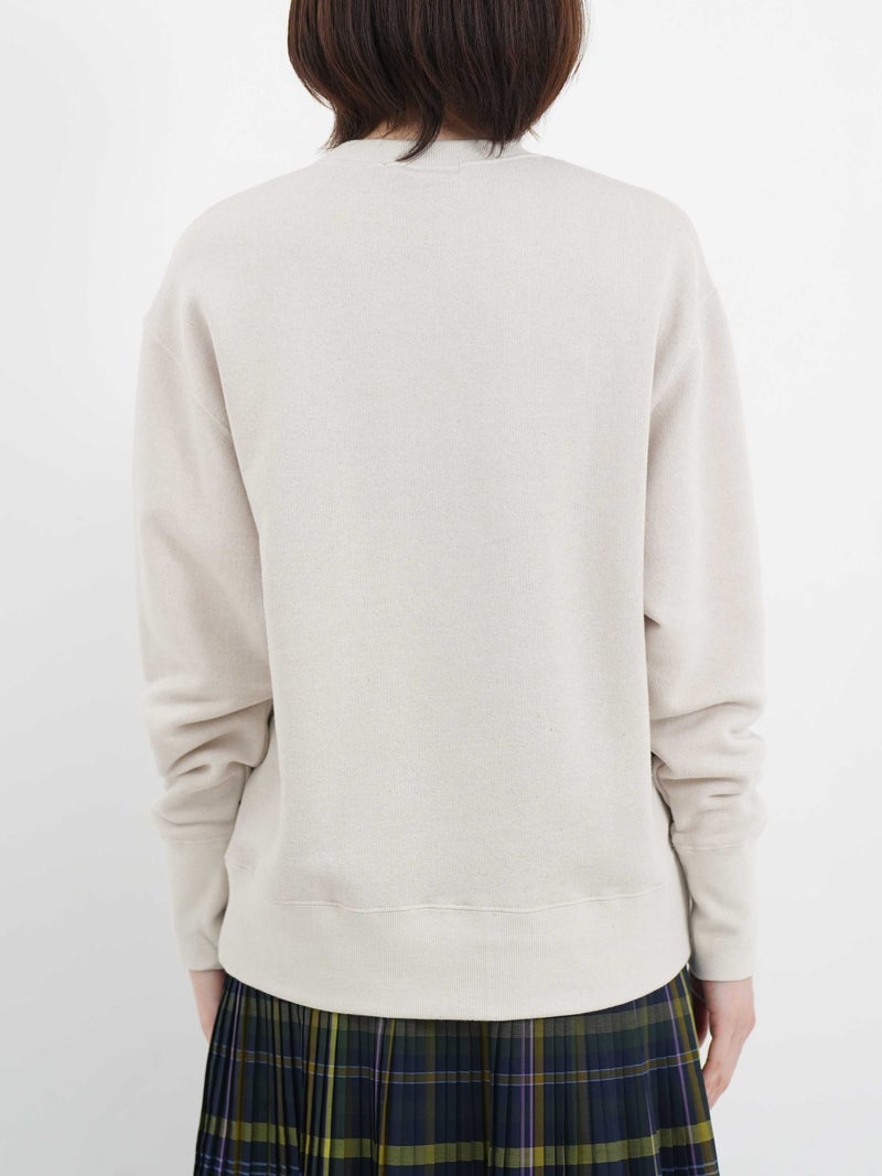 リネン混が珍しい軽い着心地のスエットプルオーバー。 リブが長めで、スッキリとしたバランスで着用いただけます。柔らかく薄手の生地なので重ね着もしやすく、季節の変わり目にぴったりな一枚です。