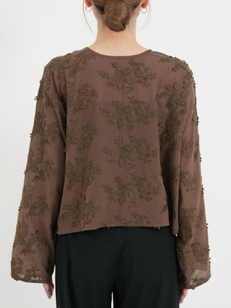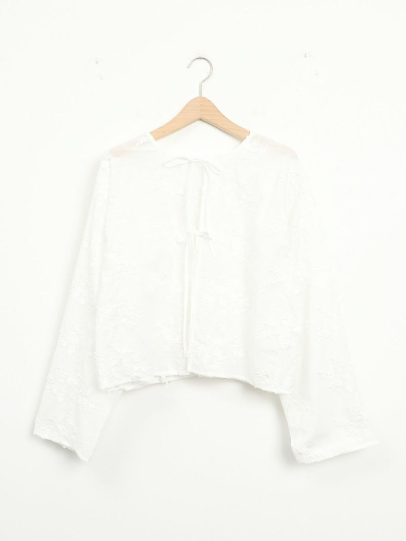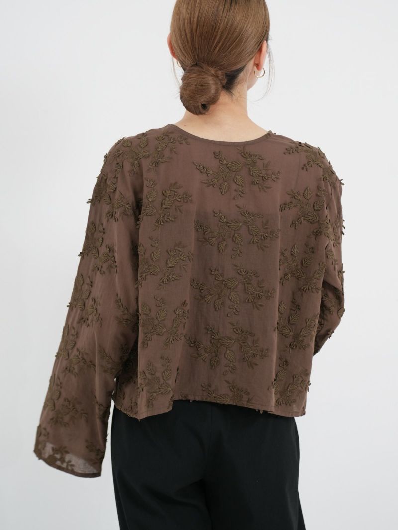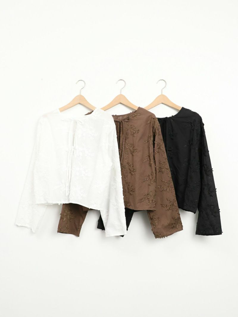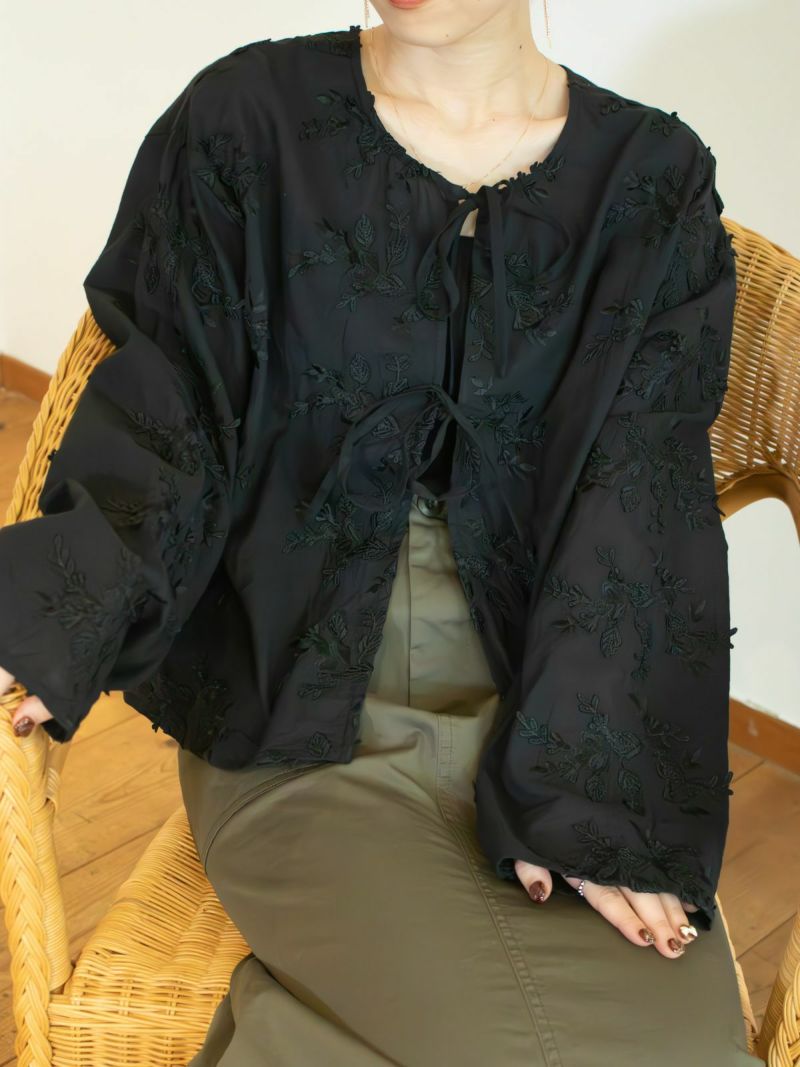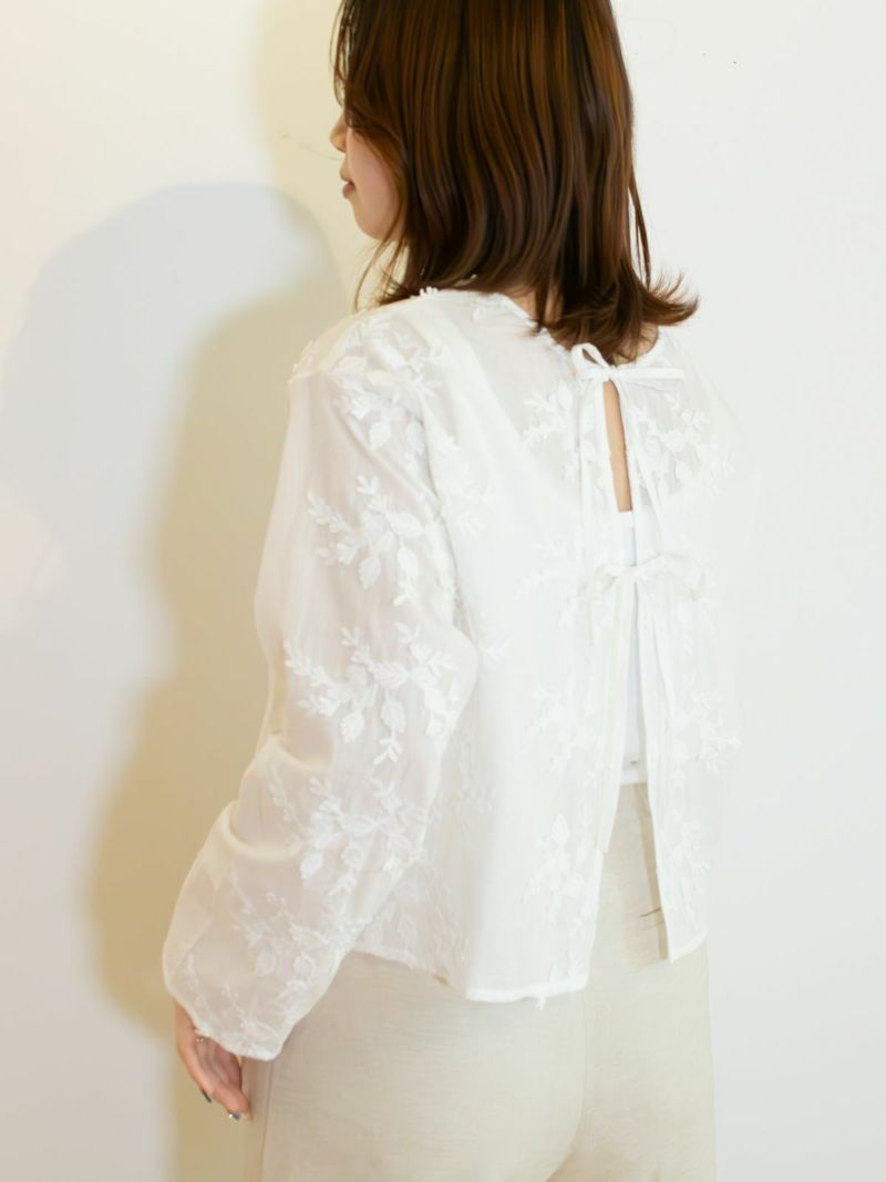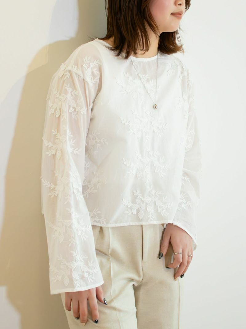 刺繍が上品な印象のレースシャツ。 コンパクトな丈感と前後2WAY仕様なデザインで、スタイリングの幅が広がります♩ デニムやチノなどのカジュアルなボトムと相性抜群です◎