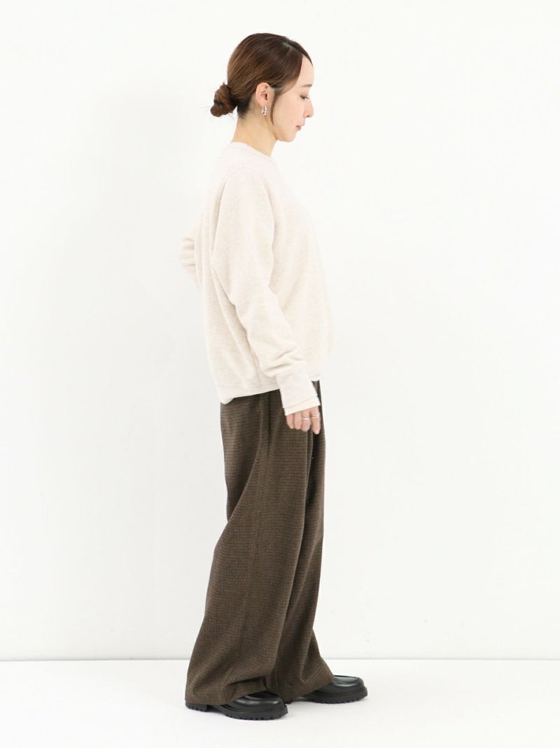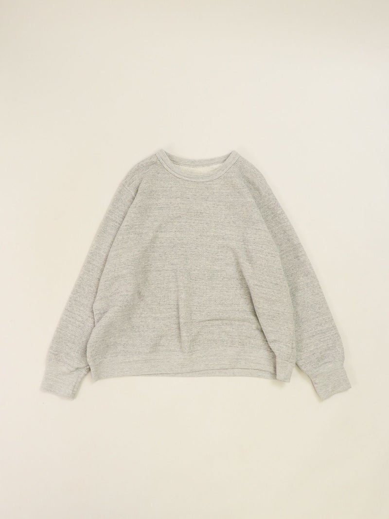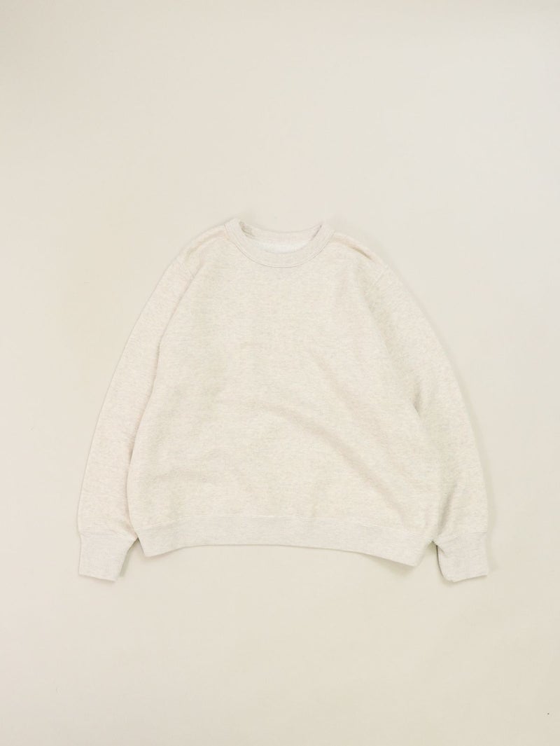 肌に馴染む柔らかいパイル生地が心地よいプルオーバー。 伸縮性のある飛び裏毛を使用し、杢調のカラーが優しいナチュラルな雰囲気に仕上げてくれます。詰まりすぎないクルーネックデザインと、程よくゆとりのあるシルエットでメリハリのあるシルエットに。ロングシーズン着用できるのも嬉しいポイント。