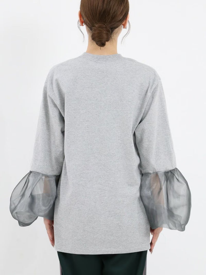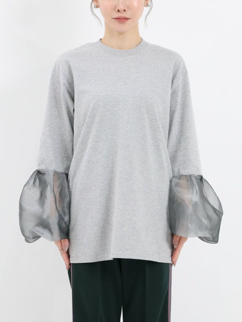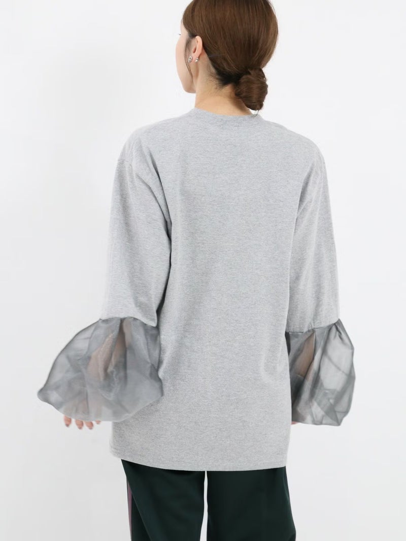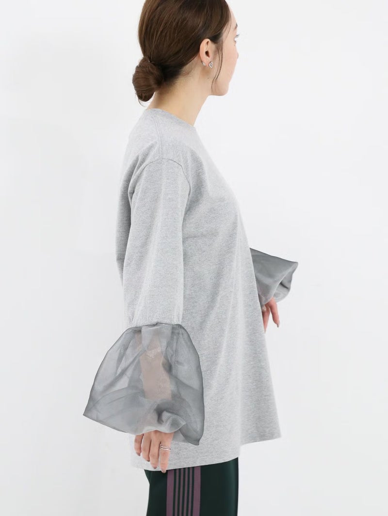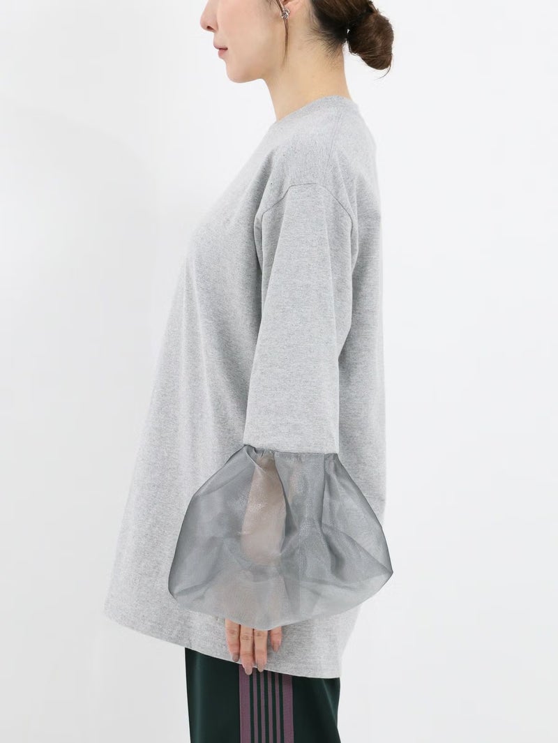 袖のシースルーデザインがポイントのTシャツ。 シンプルながらも程よい透け感がスタイリングに抜け感をプラスしてくれます。まだ暑さの残る時期は一枚で、肌寒くなればジャケットやカーディガンのインナーとしても活躍。季節を問わず、長く着回せる万能アイテムです。
