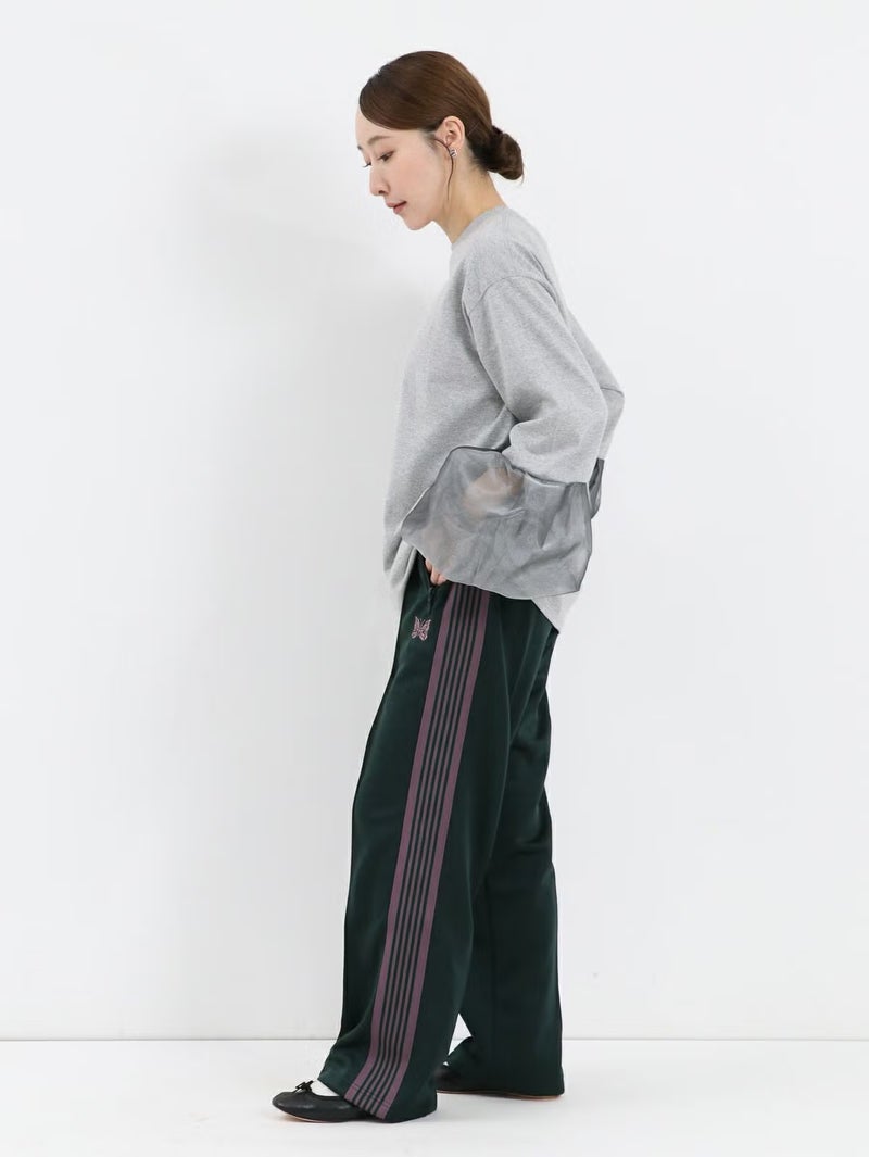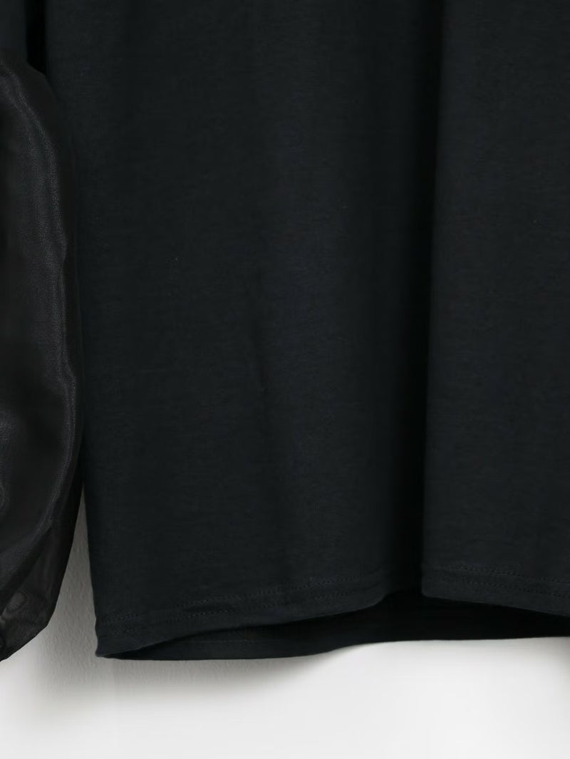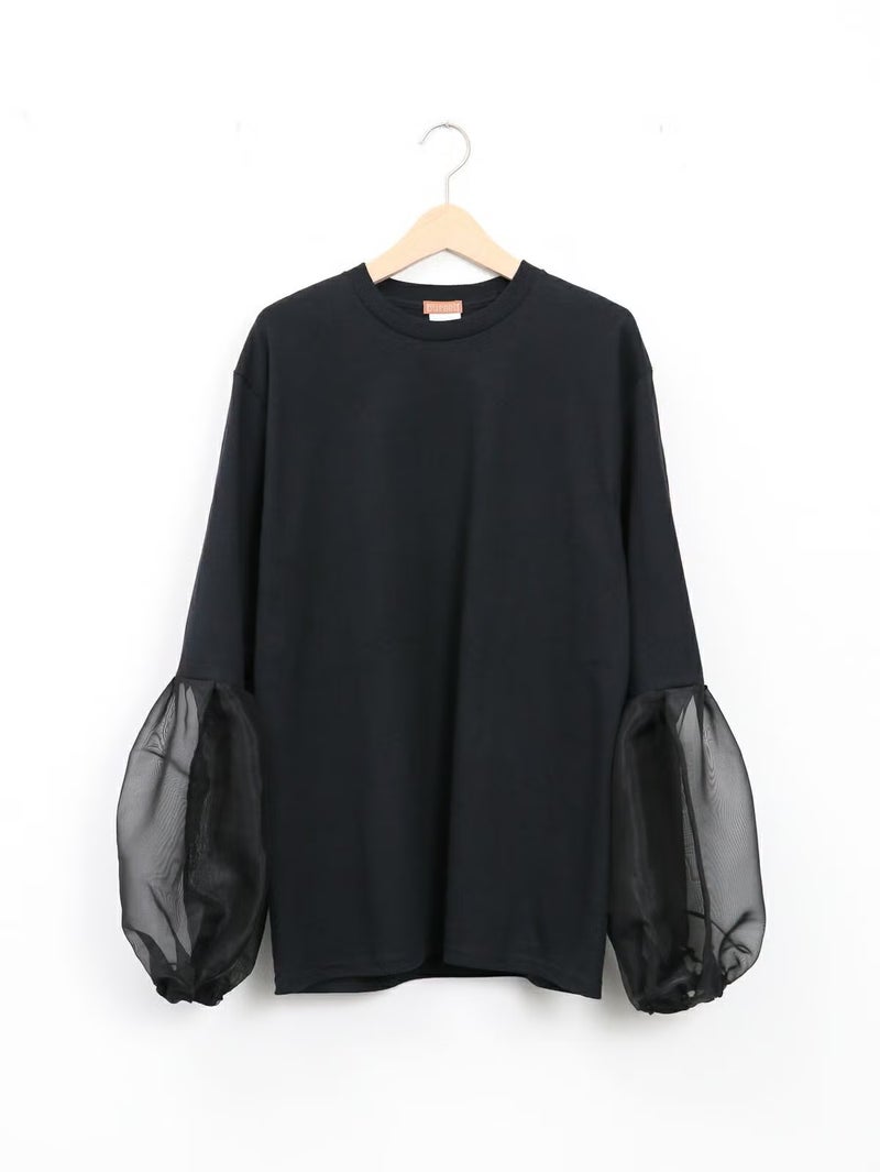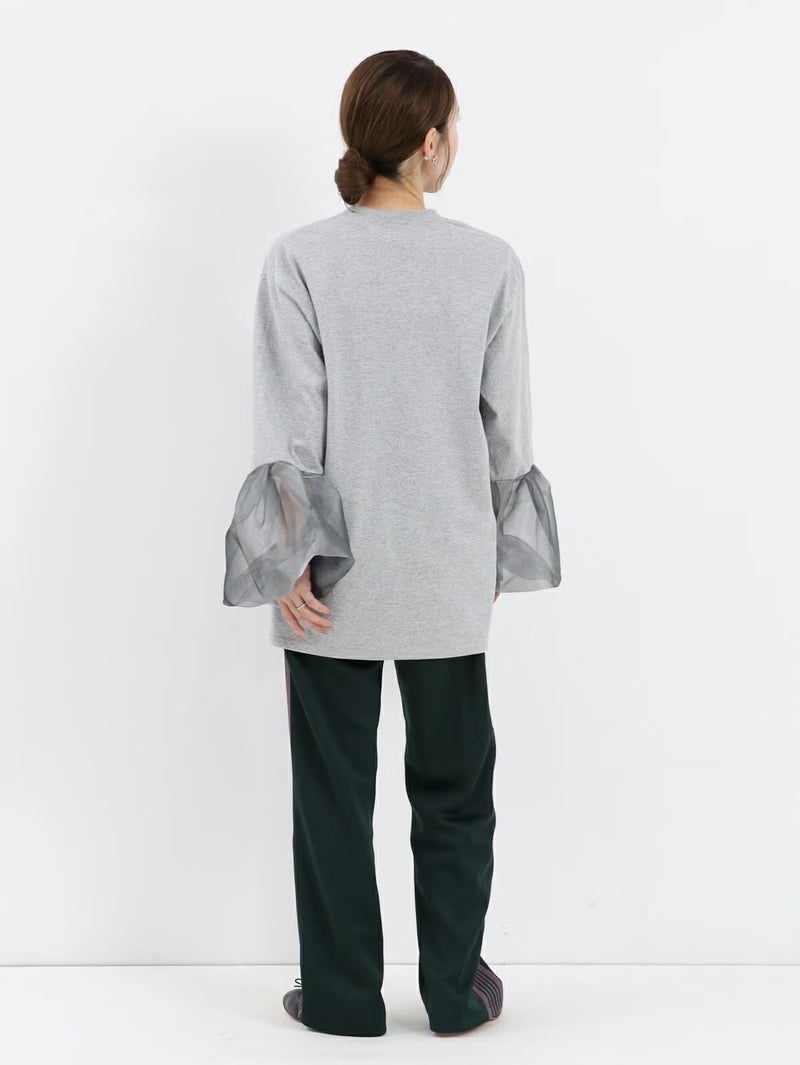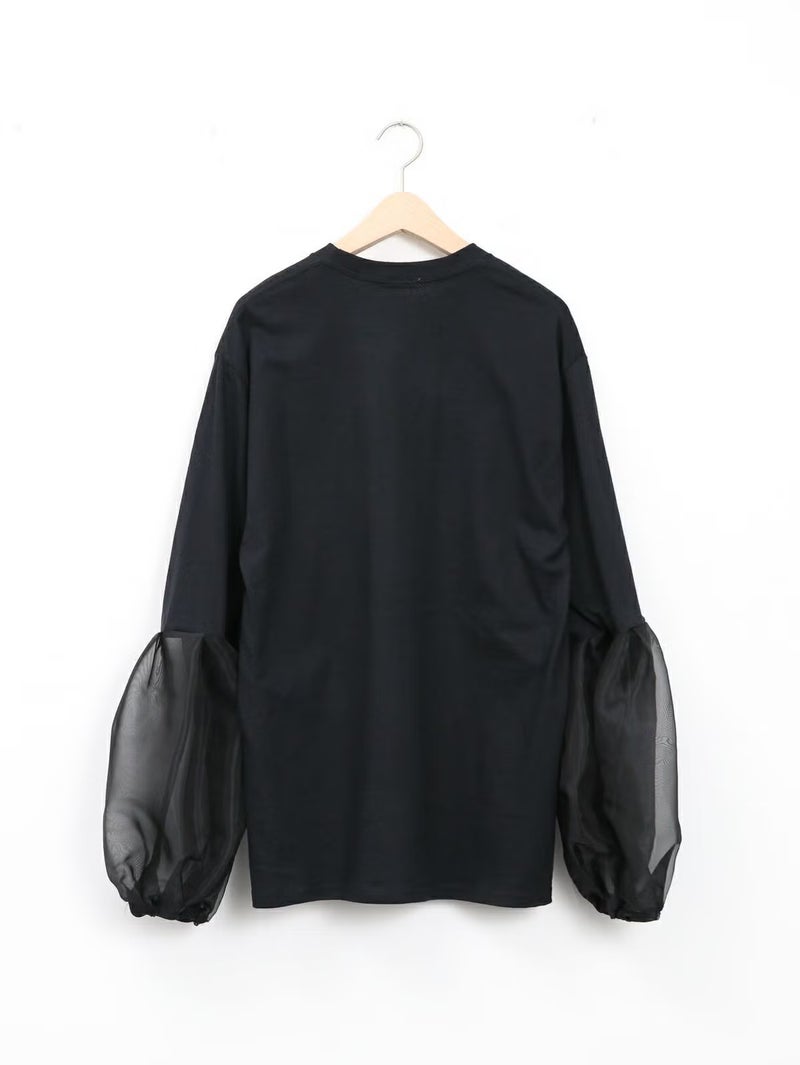 袖のシースルーデザインがポイントのTシャツ。 シンプルながらも程よい透け感がスタイリングに抜け感をプラスしてくれます。まだ暑さの残る時期は一枚で、肌寒くなればジャケットやカーディガンのインナーとしても活躍。季節を問わず、長く着回せる万能アイテムです。