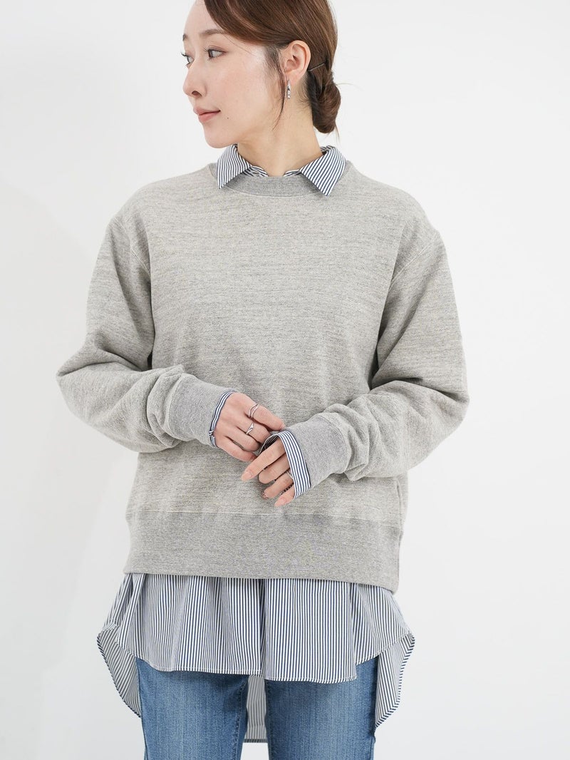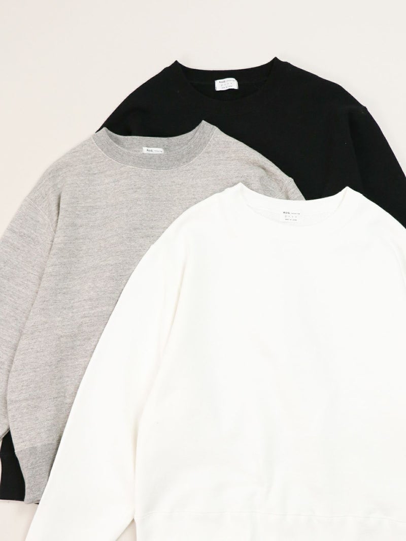 A.U.G relaxing 定番の裏毛クルーネックプルオーバー。 コットン100%で程よい厚みの生地感。シンプルで飽きのこないデザインはデイリースタイリングに活躍してくれる一枚です。