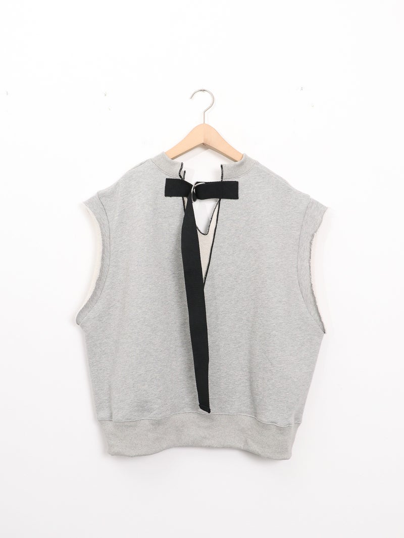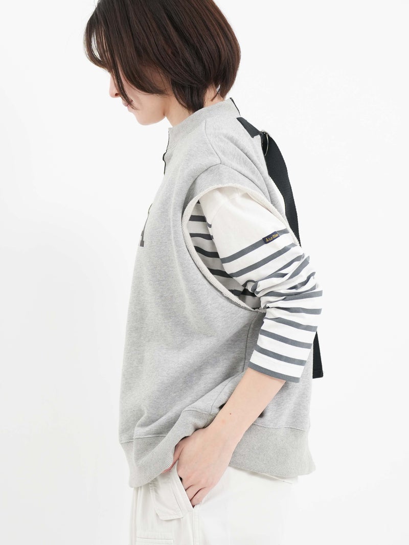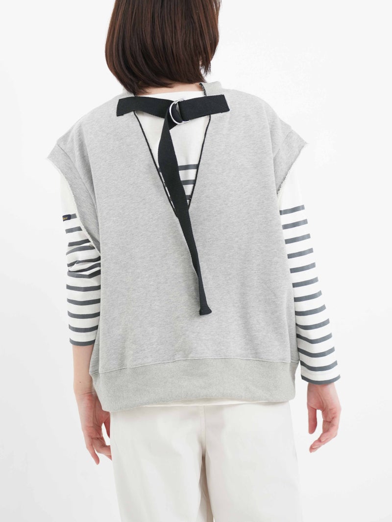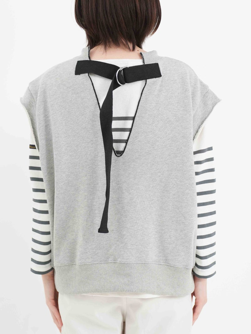 リメイク風の施しが特徴的なテープベルトスウェットベスト。