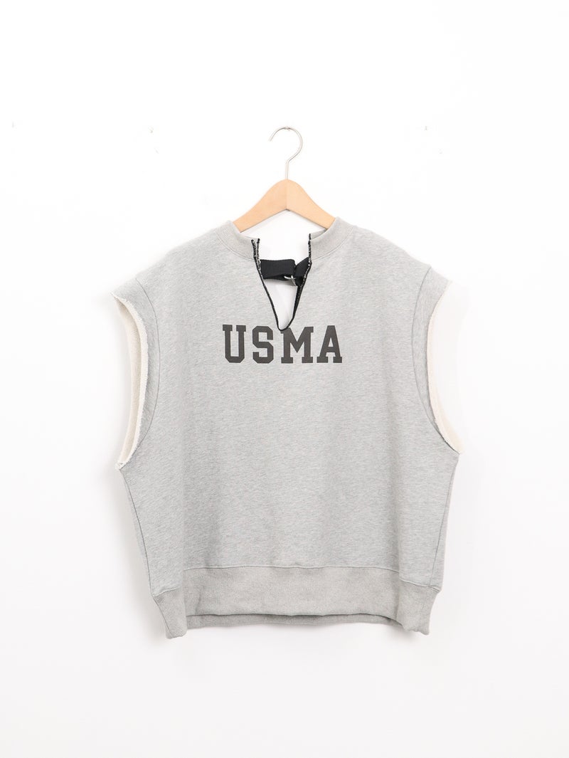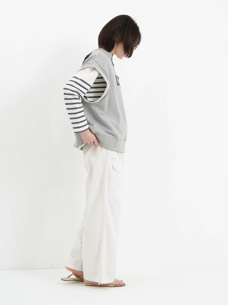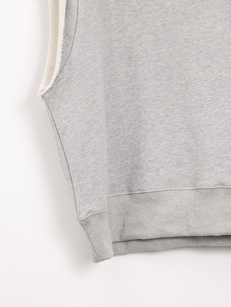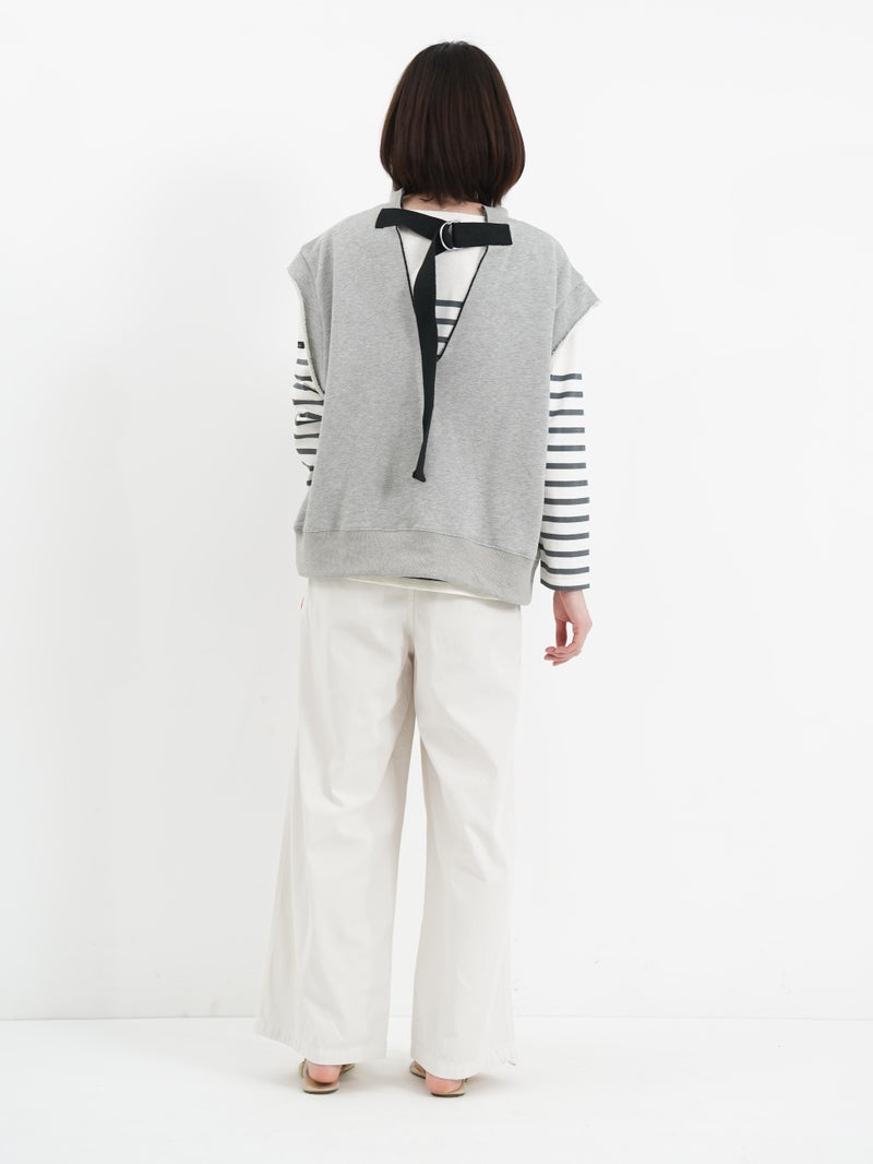 リメイク風の施しが特徴的なテープベルトスウェットベスト。