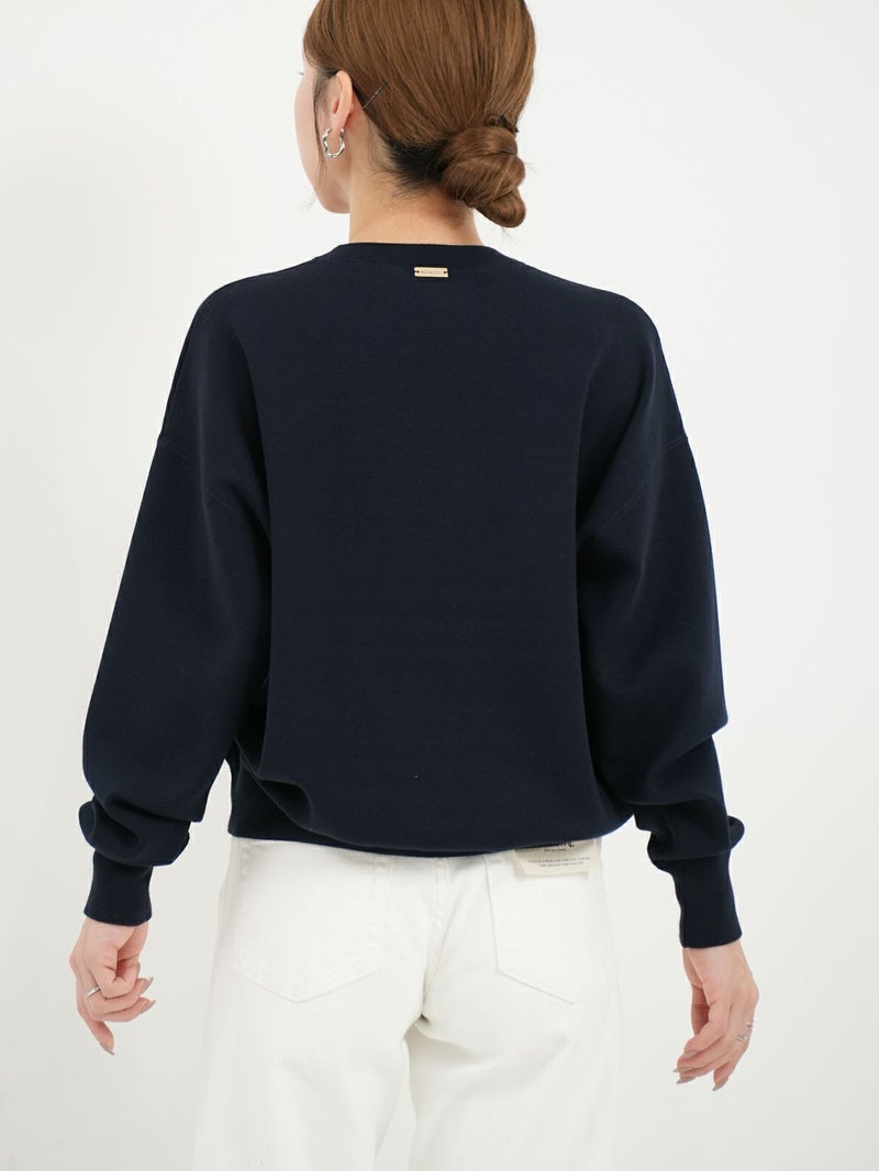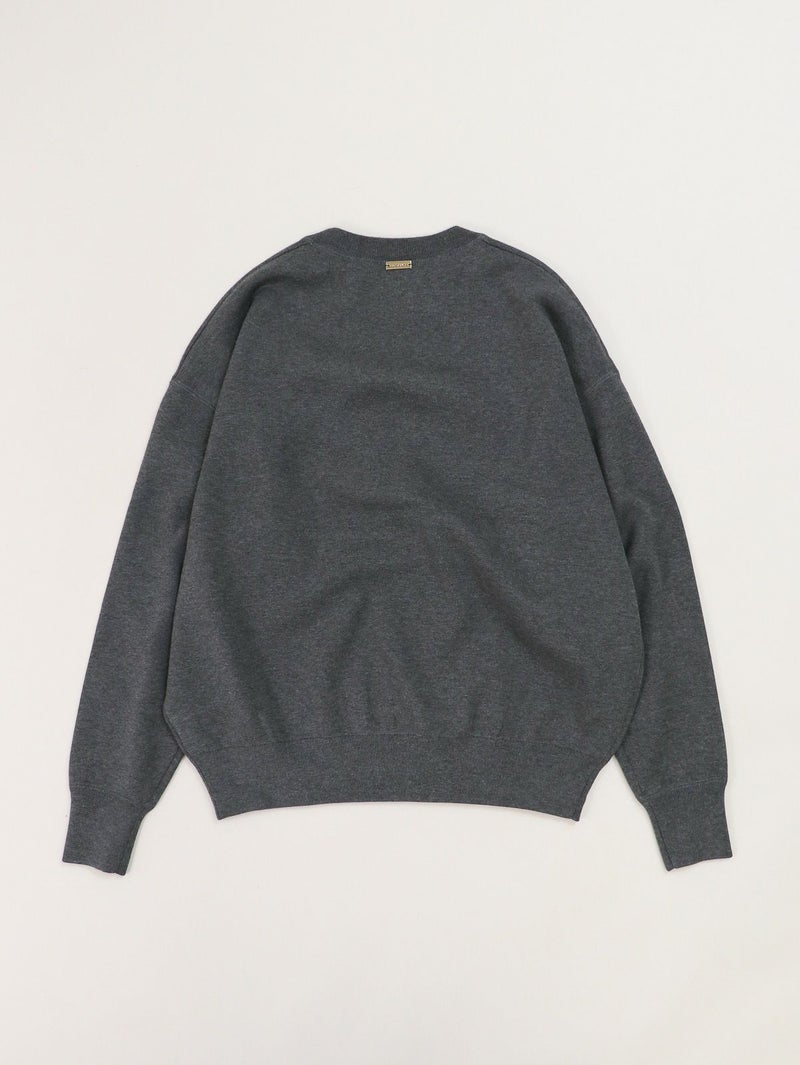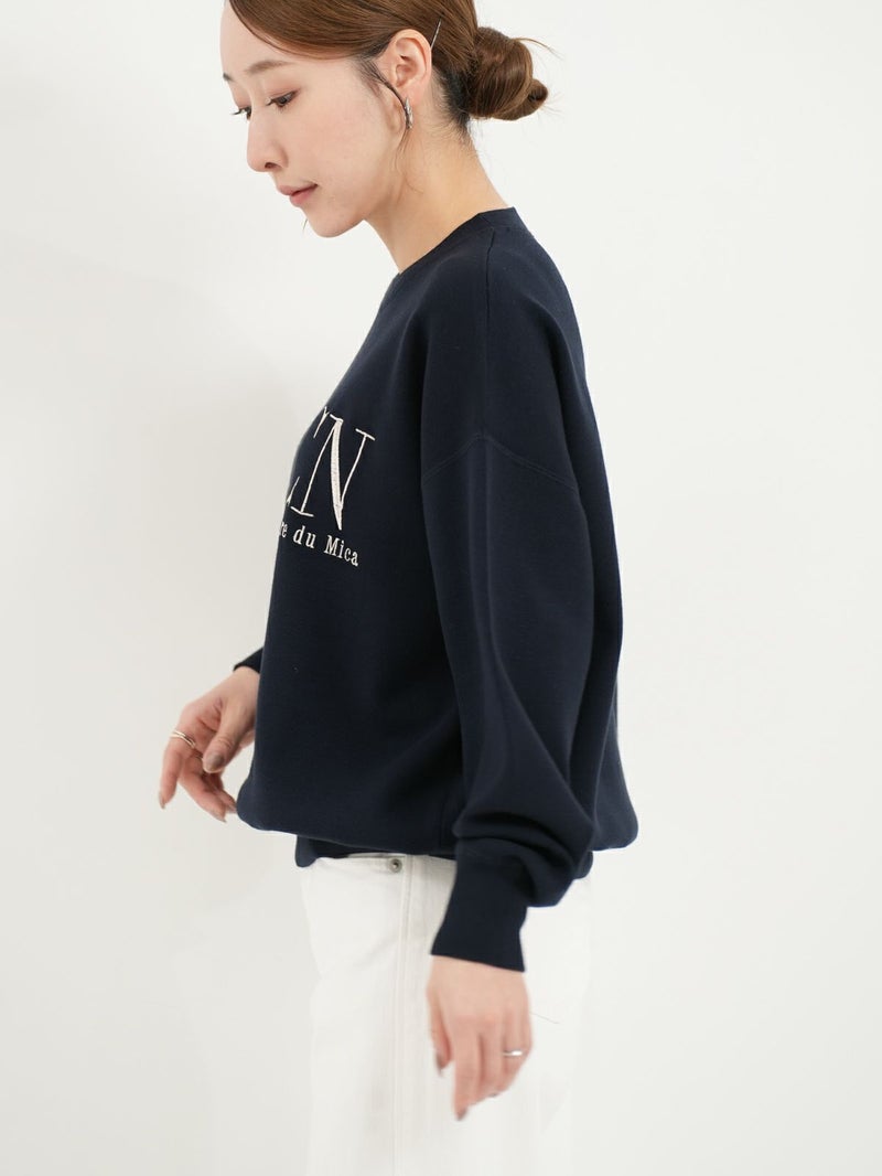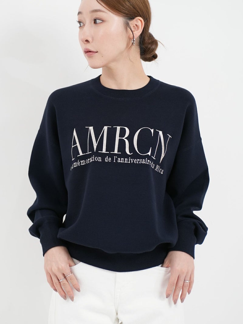 【AMERICANA】×【MICA&DEAL】 AMERICANAとコラボレーションしたニット。 程よくゆとりのあるスクエアシルエットで、着心地が魅力のクルーネックニット。 胸元に光沢のあるロゴ刺繍を施し、すっきりとした印象に仕上げました。 カジュアルなロゴニットも、目面がきれいな素材を使用することで大人っぽく仕上げています。