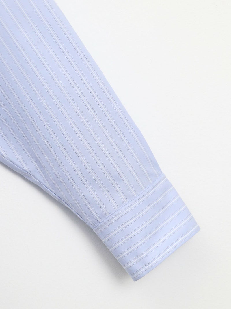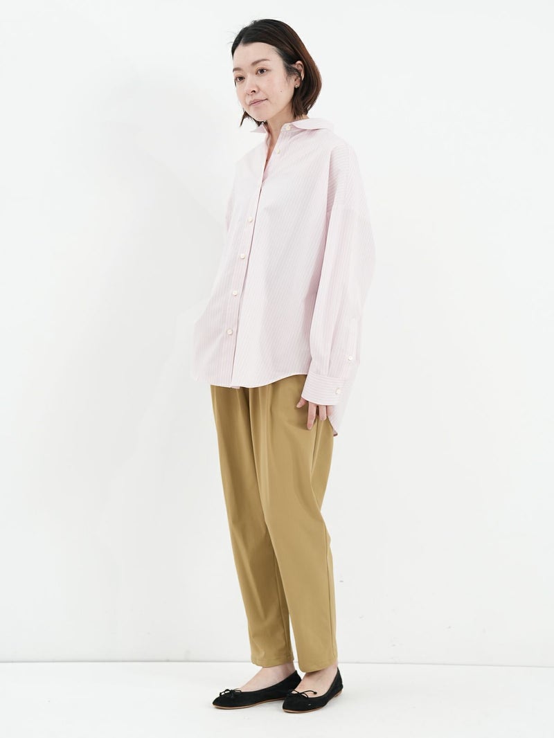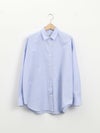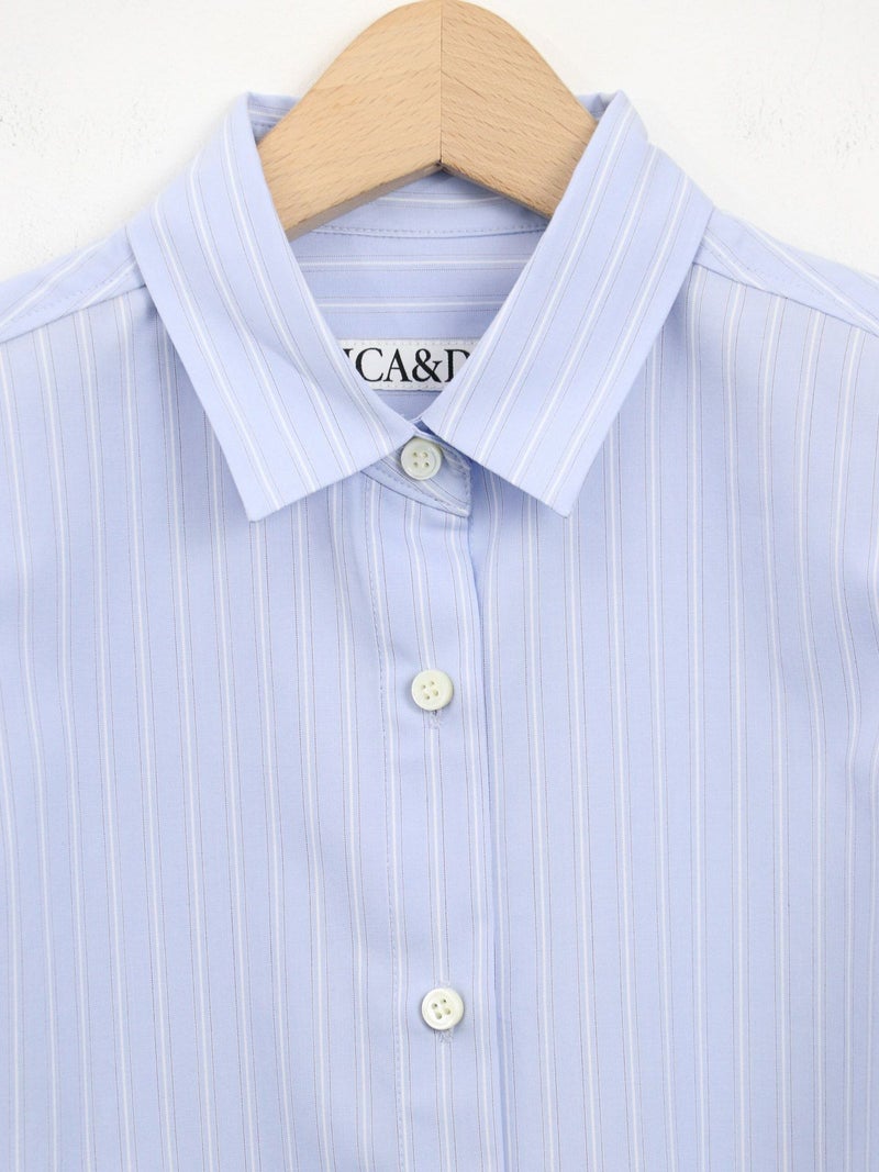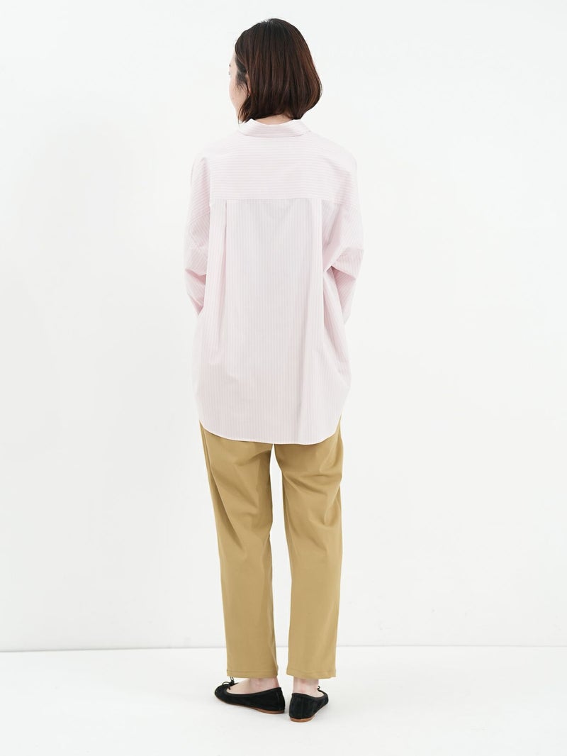 ベーシックで着回し力の高いストライプシャツ。 程よくオーバーサイズなシルエットで、体のラインを拾わずリラックスした着心地。裾のカッティングにこだわり、羽織り・インナー・1枚着と、幅広いスタイリングに対応するデザインに仕上げました。シーズンを問わず活躍し、ワードローブに欠かせない万能アイテムです。