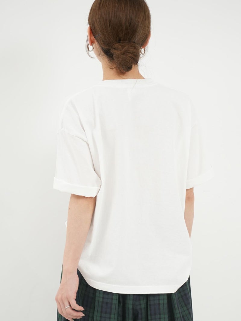 ワイドなシルエットがデイリーに使えるbibmilkのリラックスフィットTシャツ。 コンパクトな丈感でありながらも程よくゆるさを感じられるので、スカートやワイドパンツとバランス良く着ていただけます。柔らかな肌触りのコットン素材を使用しているため、着心地がとても良いです。