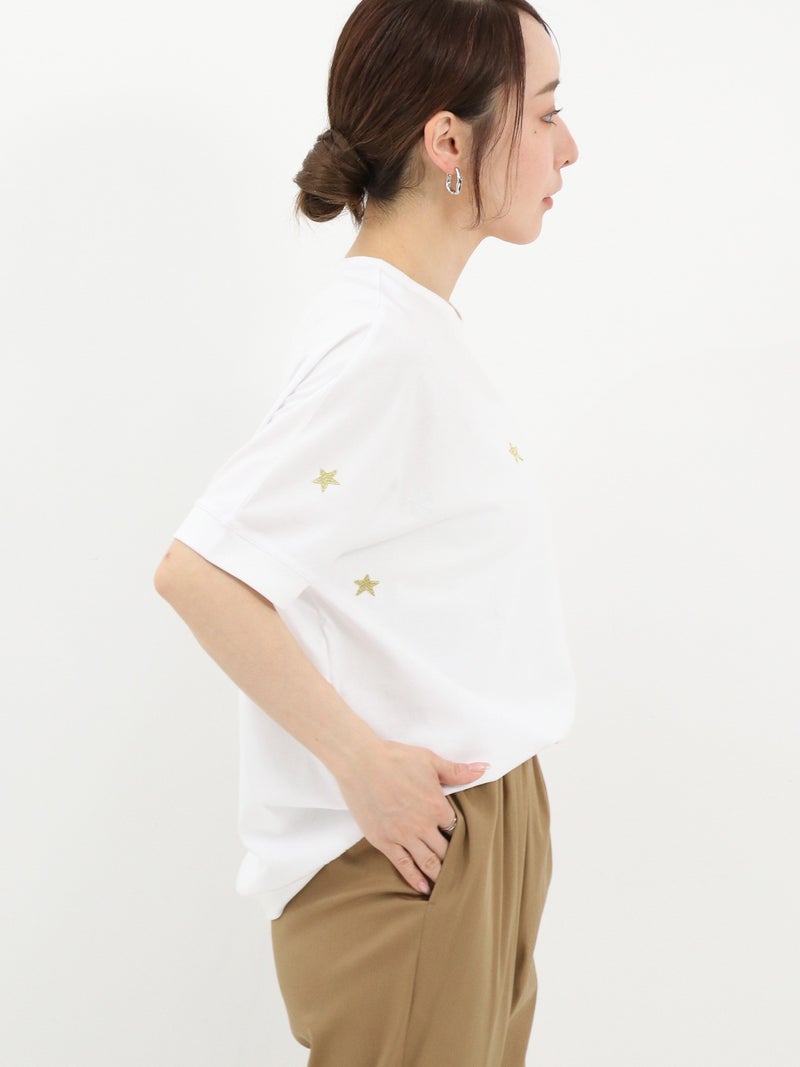 ロゴTシャツとは違った大人の遊び心ある星柄刺繍Tシャツ。