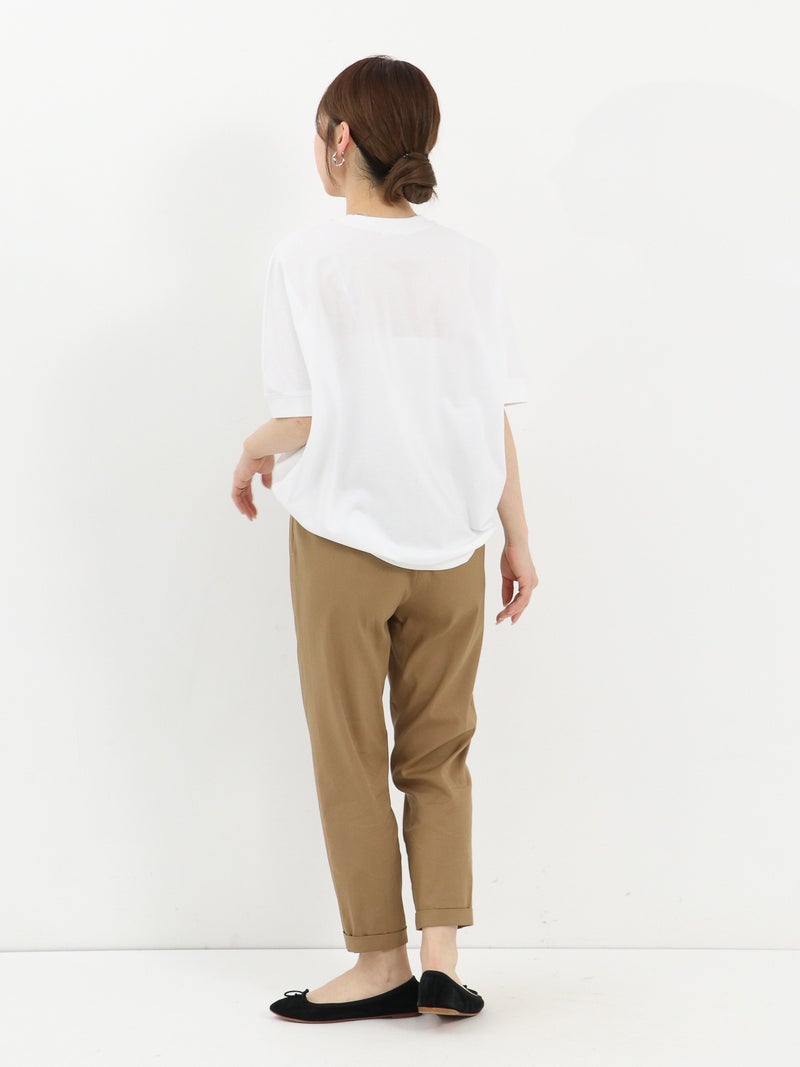 程よくゆとりのあるサイズ感は、これからの時期も肌離れが良く快適に着ていただけるのもポイント。スカート合わせで女性らしく、パンツ合わせでラフにと幅広いスタイリングに活躍する1枚。