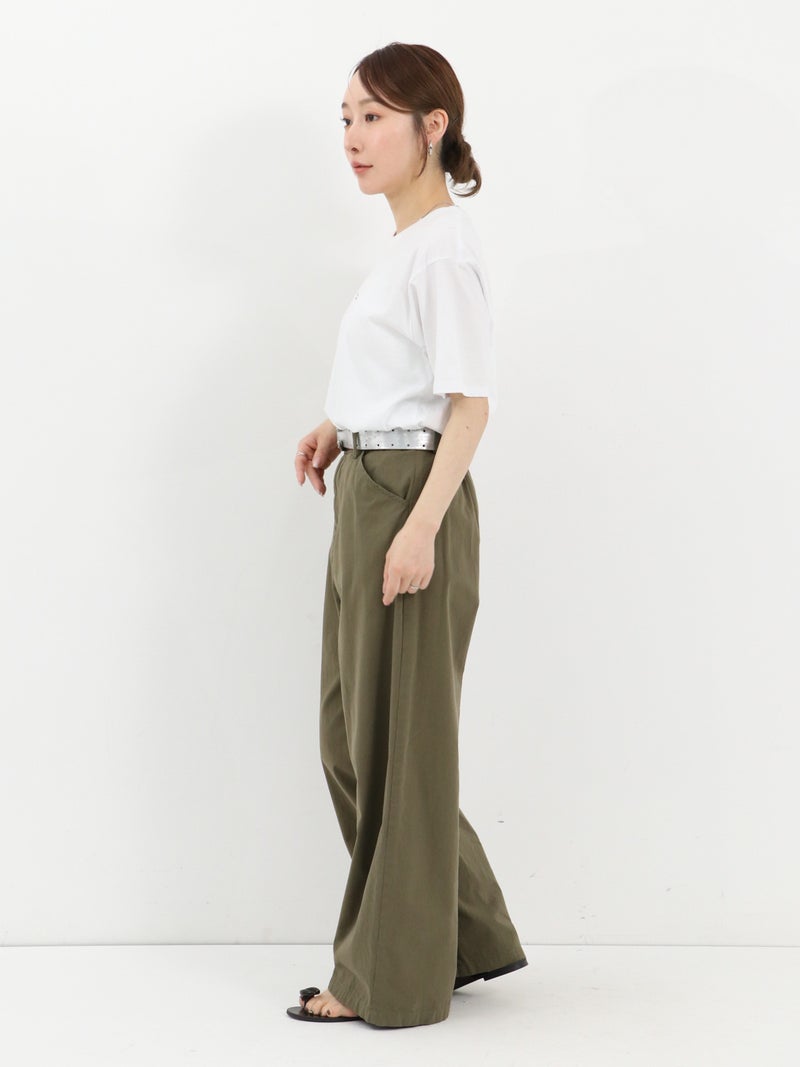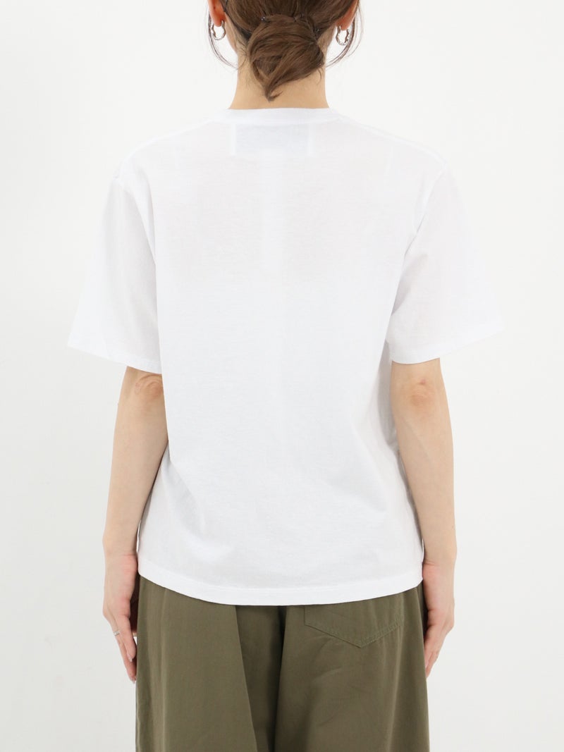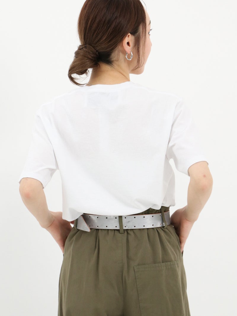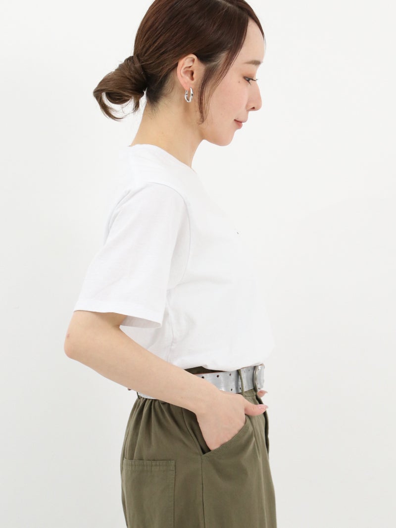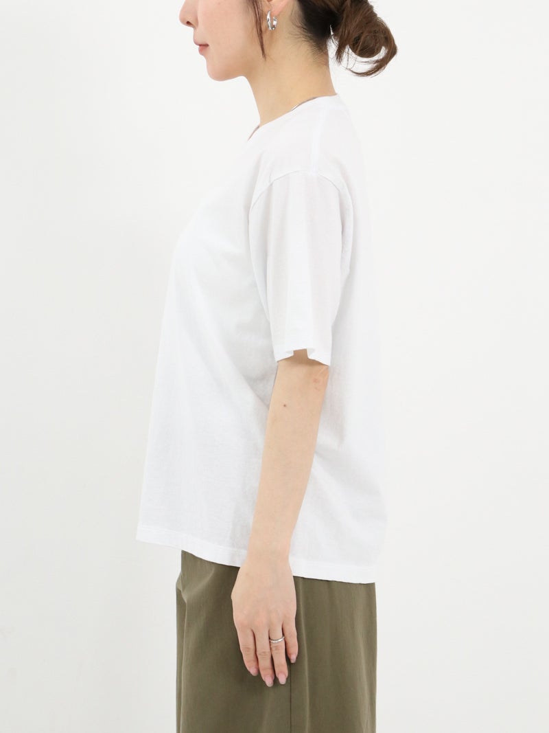 コンパクトながら適度なゆとりのある絶妙なサイズ感のロゴTシャツ。主張しすぎない小さめのロゴが大人カジュアルなスタイリングにマッチします。綿100%で、薄いのに透けにくく、しなやかでさらりと涼しい素材感が特徴です。