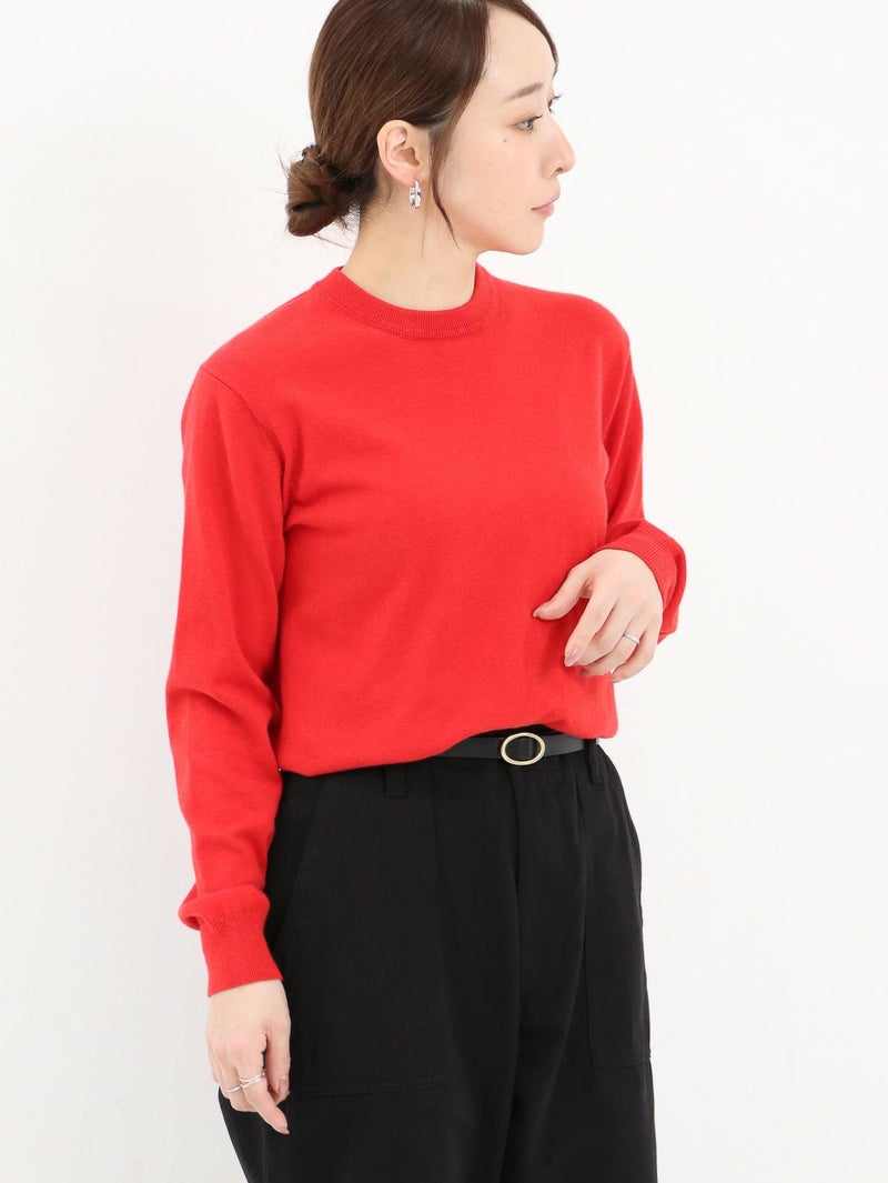 コットンなのにウールのような上品な質感のニット。 カシミヤのような滑らかな肌当たりが虜になるアイテムです。綿100%でご家庭での手洗いも可能です。シンプルデザインで、どんなコーデにも馴染みやすく、差し色使いに重宝します。