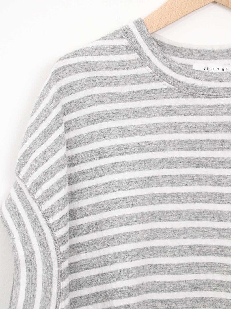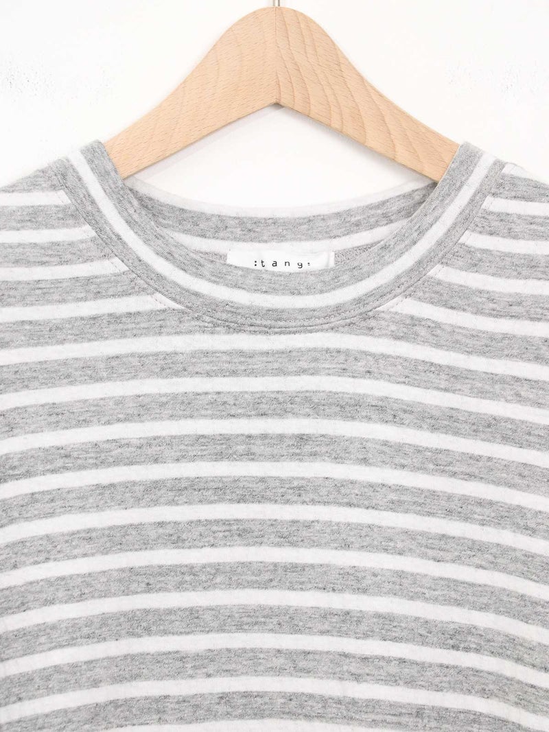 【 TANG / タング 】 TANG(タング)とは「ちょっと気になるかおり、おと」 ワーク・デイリー・スポーツの要素をデザイン・スタイリングのベースとしてすこしチャーミングで、すこしモードなカジュアルを提案します。 「自然・やさしさ・やわらかさ」を感じる、 表情のある素材を世界中から探し、基本に忠実なブレないモノづくりで 着心地の良い、 リラックスできるニットとカットソーを作り出しています。